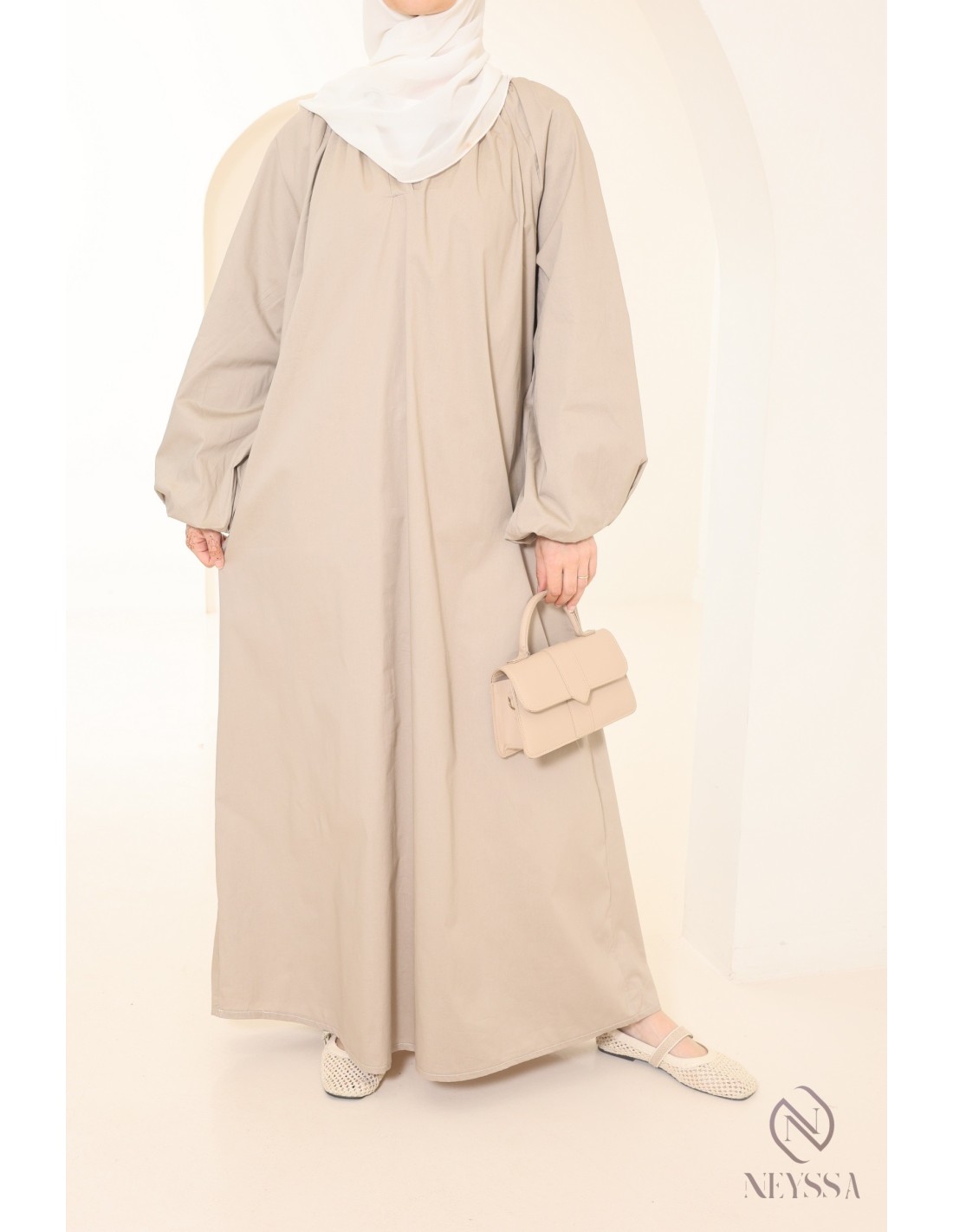 Lange Abaya aus Baumwolle mit Puffärmeln und Hemdkragen