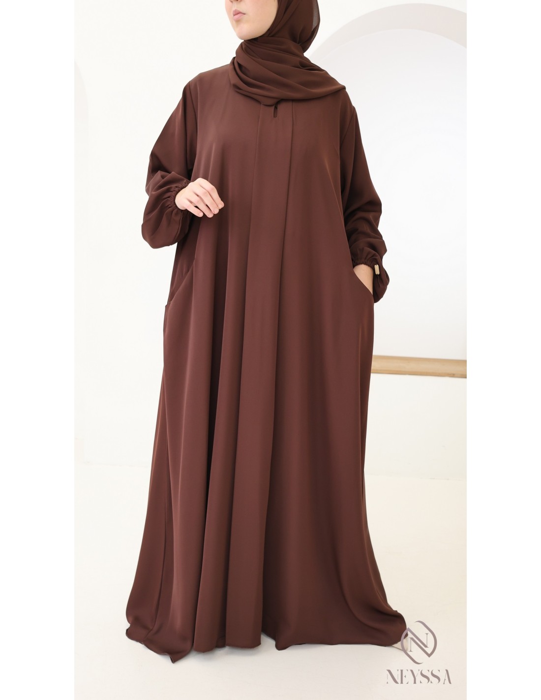 Braune Abaya Dubai aus Nidah-Stoff mit Taschen + Hijab inklusive