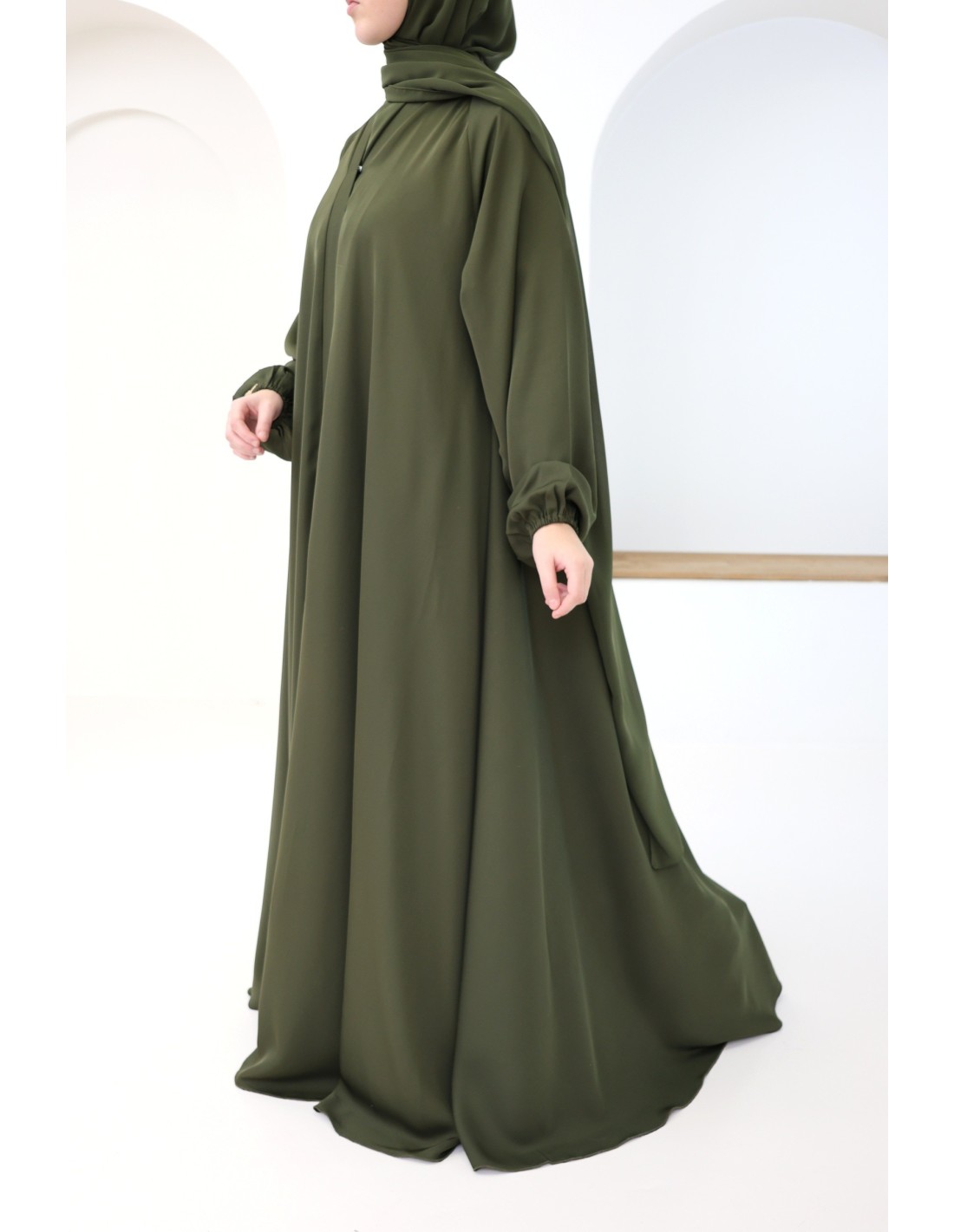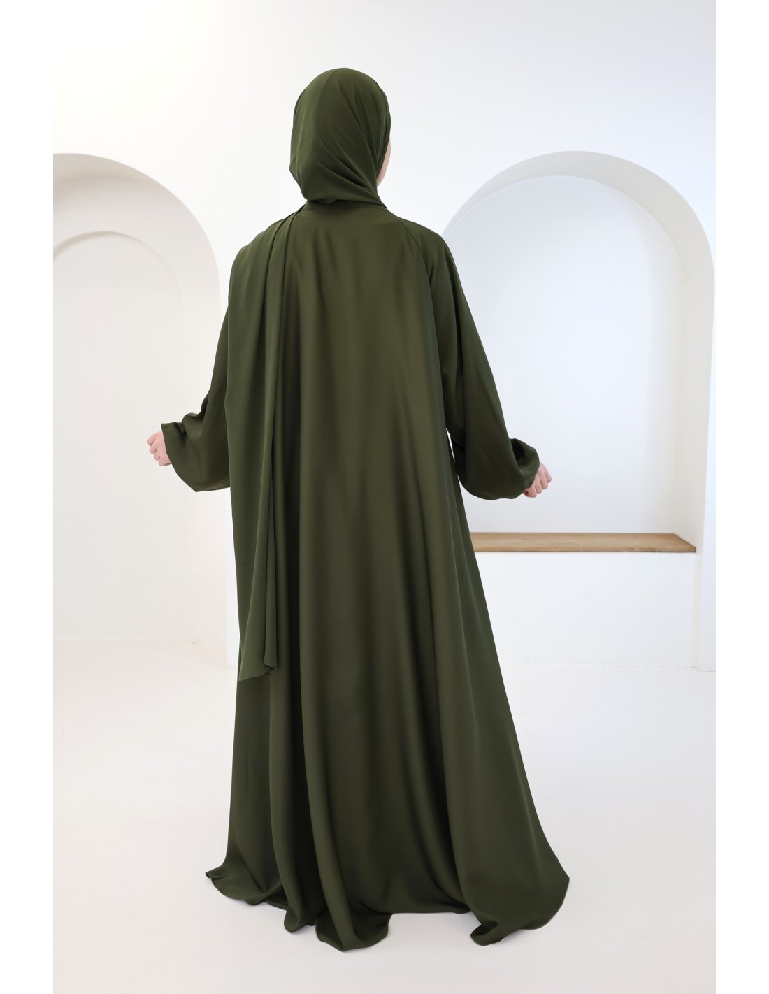Sie werden sich in die zweiteilige Abaya Dubai khaki mit Chiffon-Hijab für verschleierte Frauen verlieben: