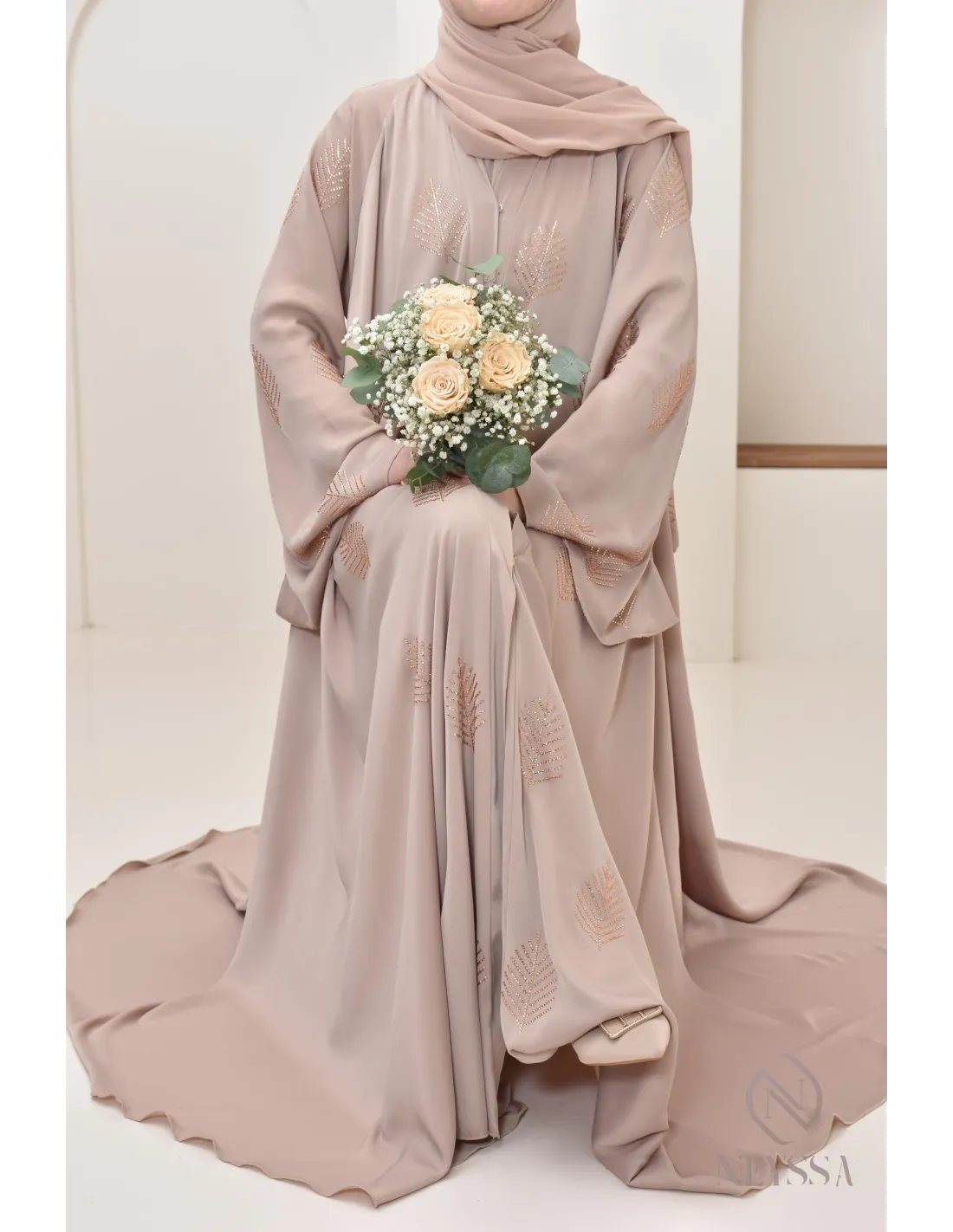 Abaya Dubai mit Strasssteinen lang Nude Damen : Umbrella-Schnitt