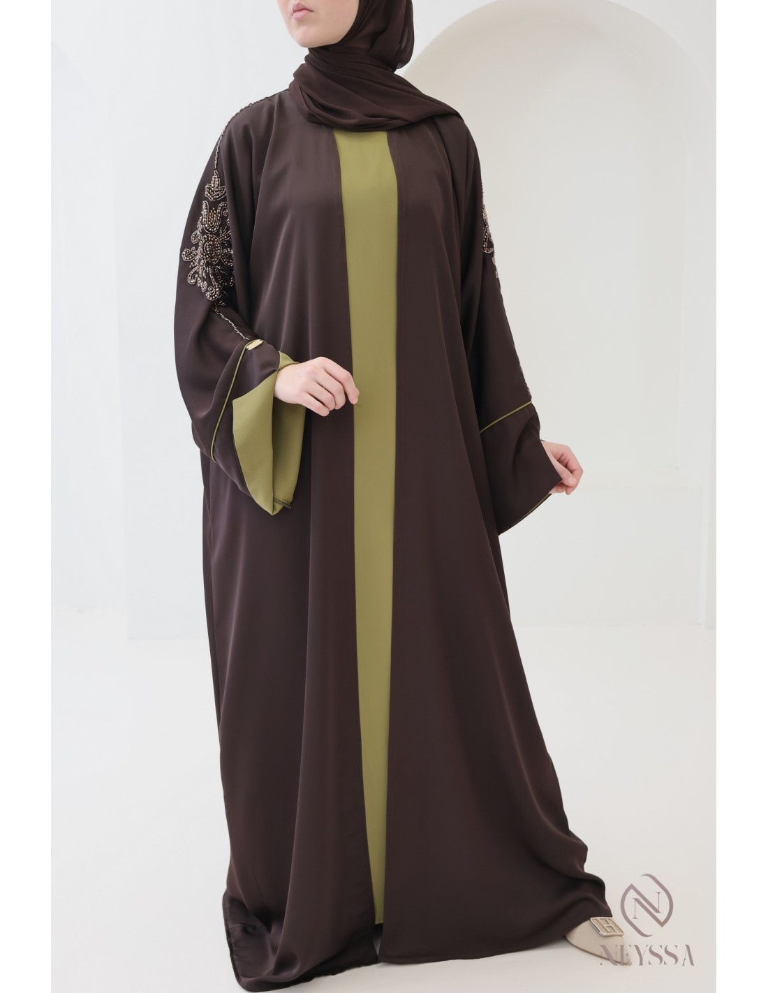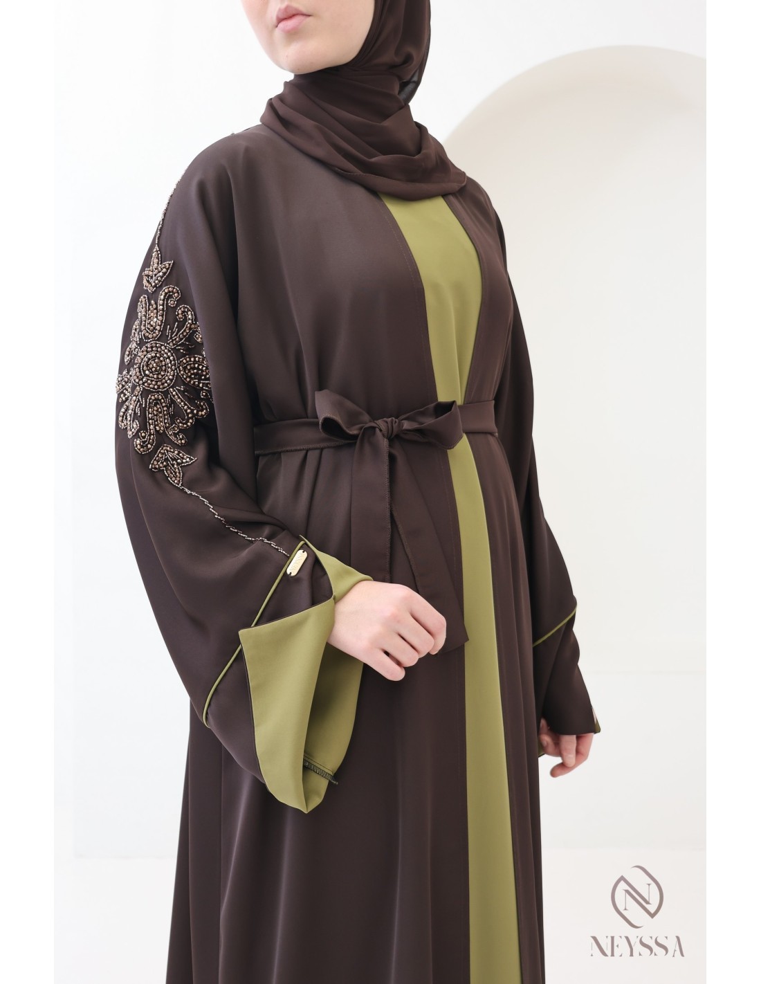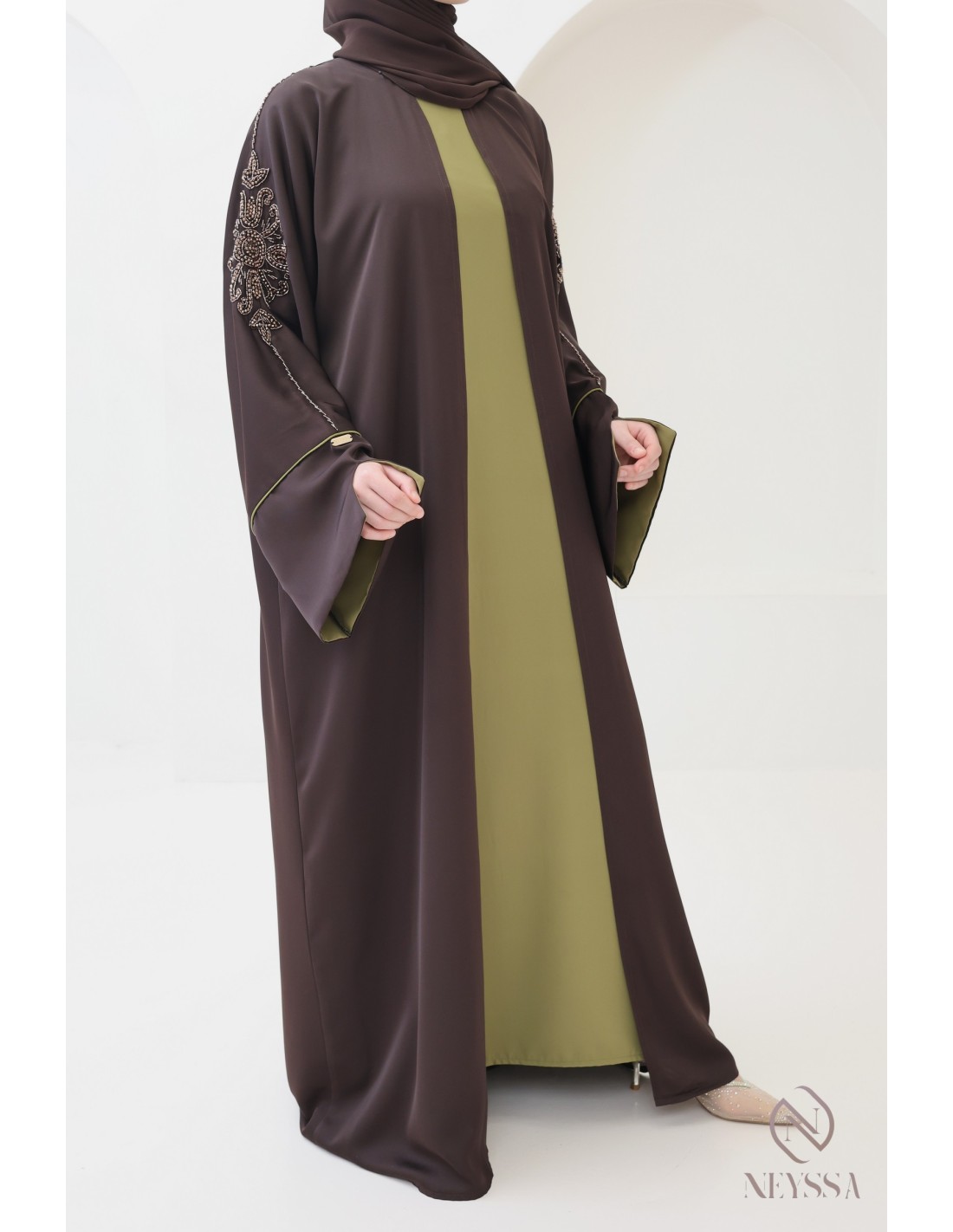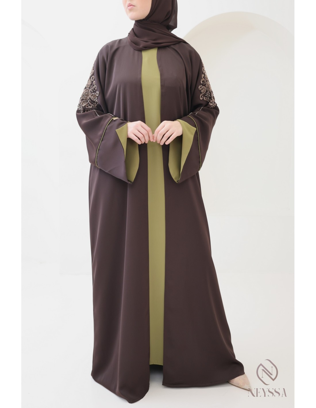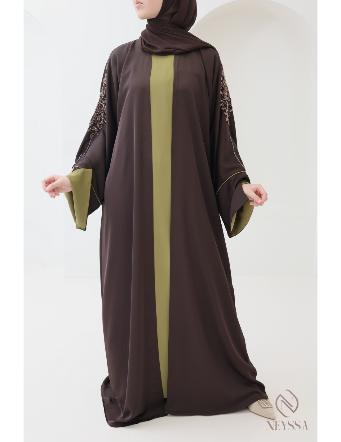 Abaya Dubai Kimono Azura Sands Schokoladenbraun/Khaki