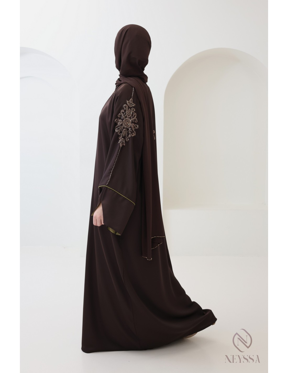 Mit diesem wunderschönen Abaya-Outfit werden Sie an Ihrem großen Tag garantiert strahlen! Die Neyssa-Konfektion stellt eine perfekte Kombination aus Eleganz und Raffinesse dar. Diese Abaya von außergewöhnlicher Qualität wird in unseren Werkstätten in Dubai sorgfältig hergestellt und versprüht einen unvergleichlichen Charme.