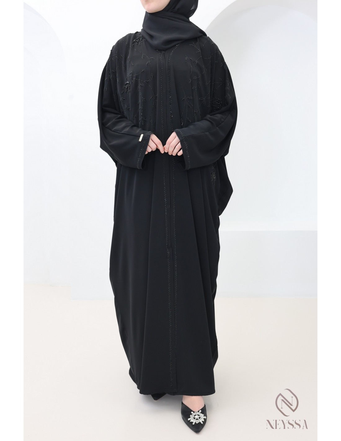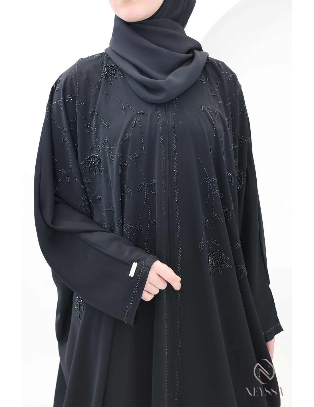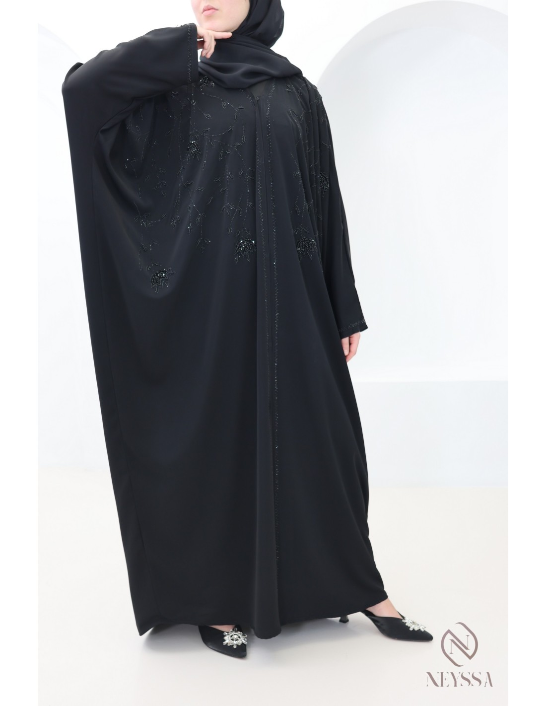 Abaya Dubai Kimono mit Perlen und schwarzen Strasssteinen, Outfit Eid