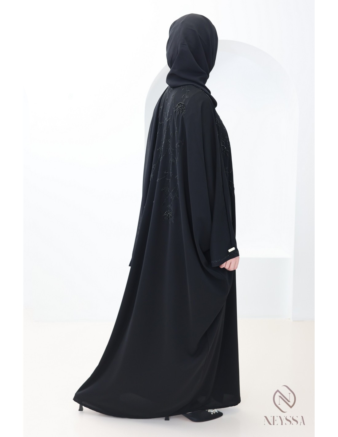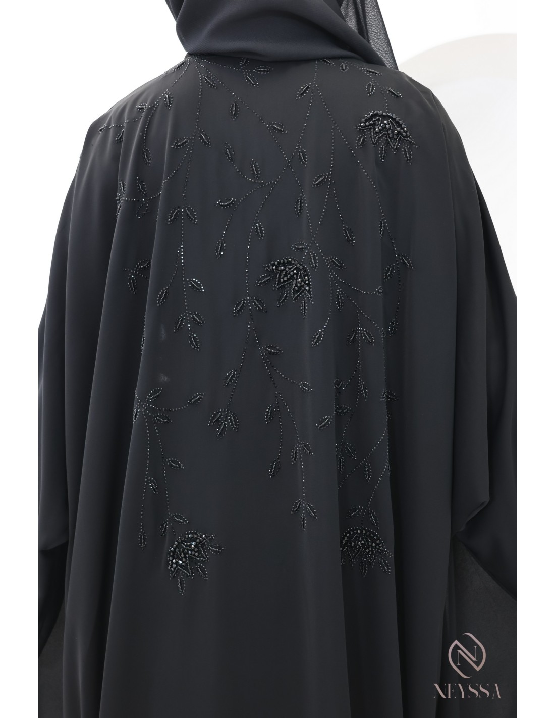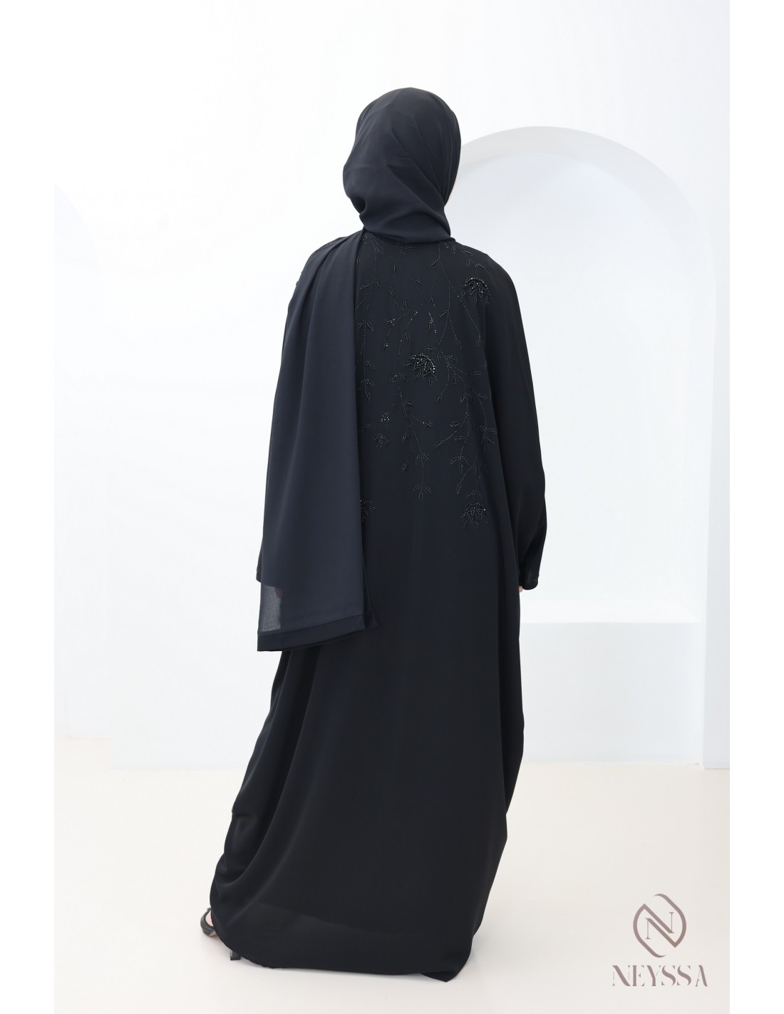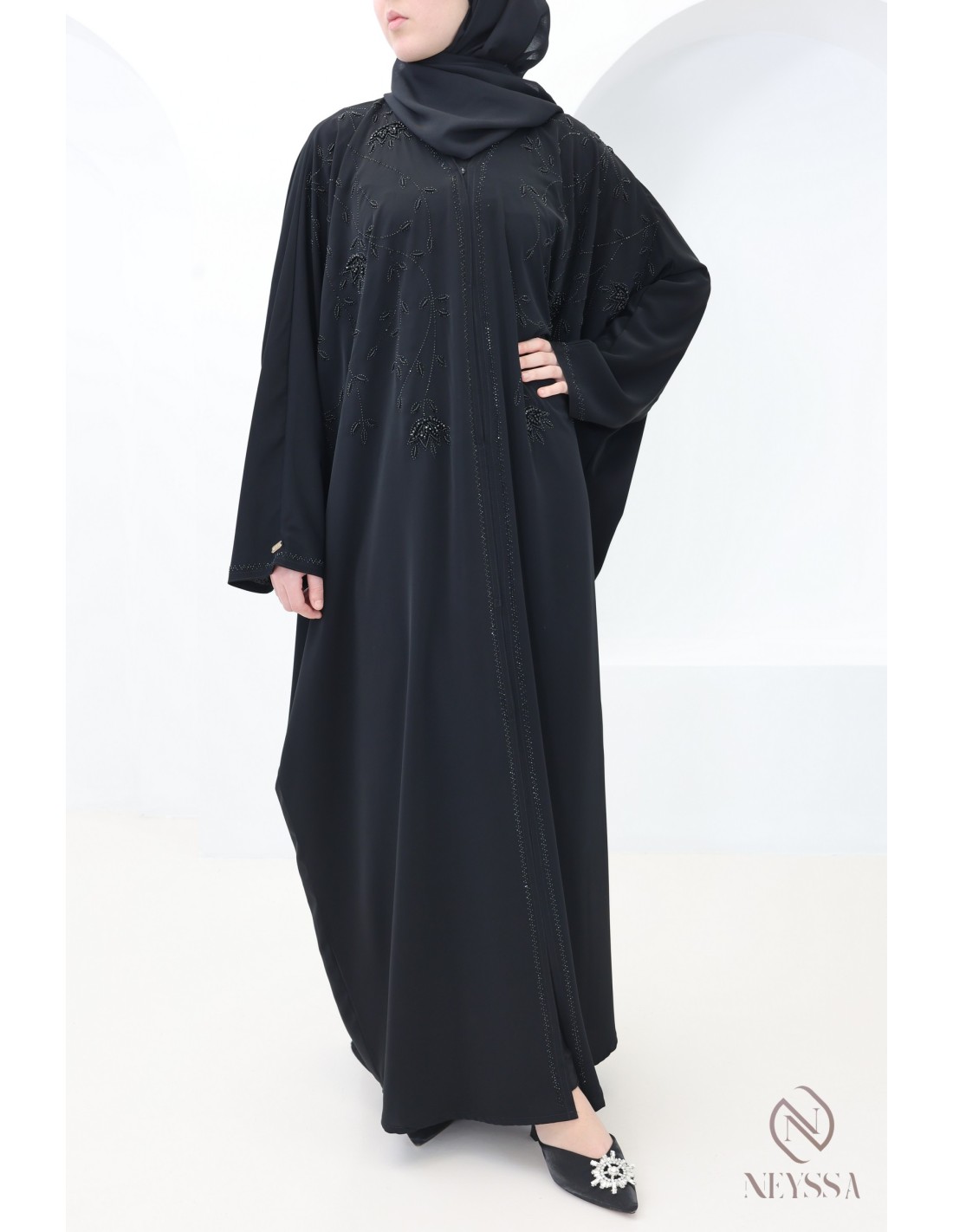 Abaya Dubai Kimono mit Perlen und schwarzen Strasssteinen, Outfit Eid