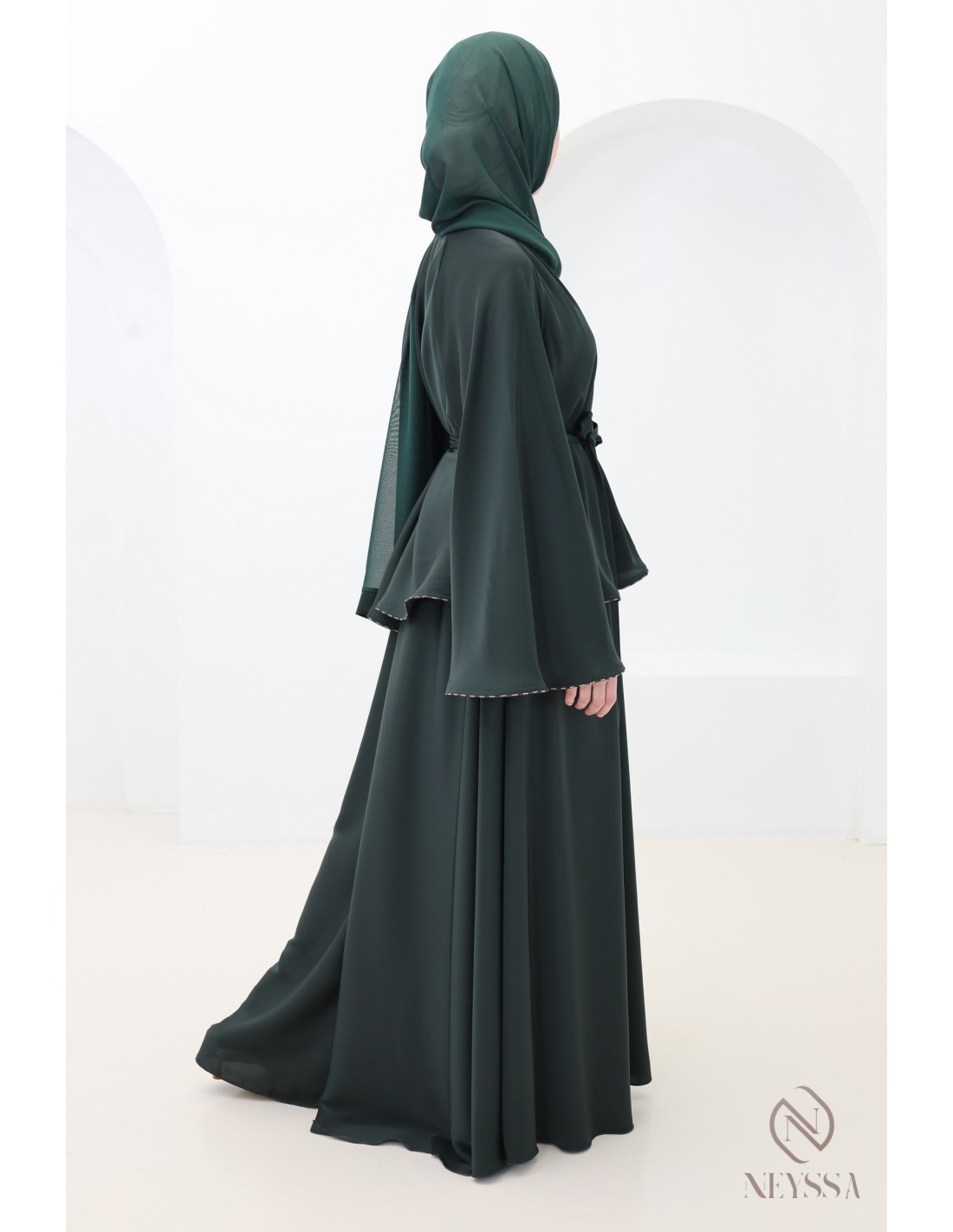 Abaya Dubai Luxus-Kimono mit ausgestellten Ärmeln Azmira Grün
