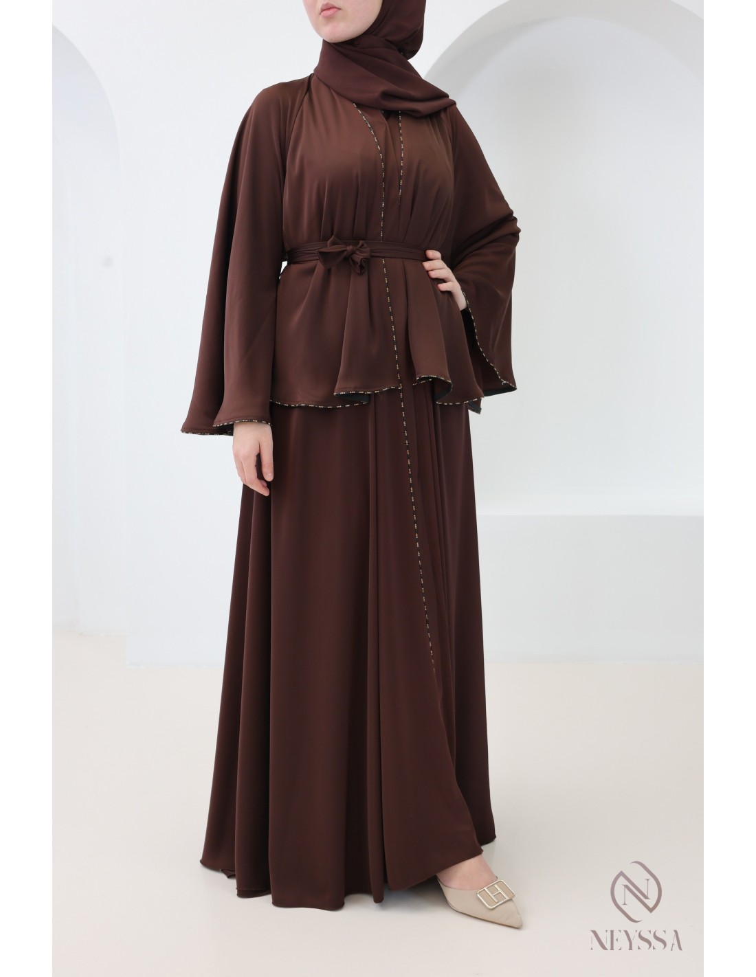 Abaya Dubai Luxus-Kimono, ausgestellt, Al Muntaza Schokoladenbraun