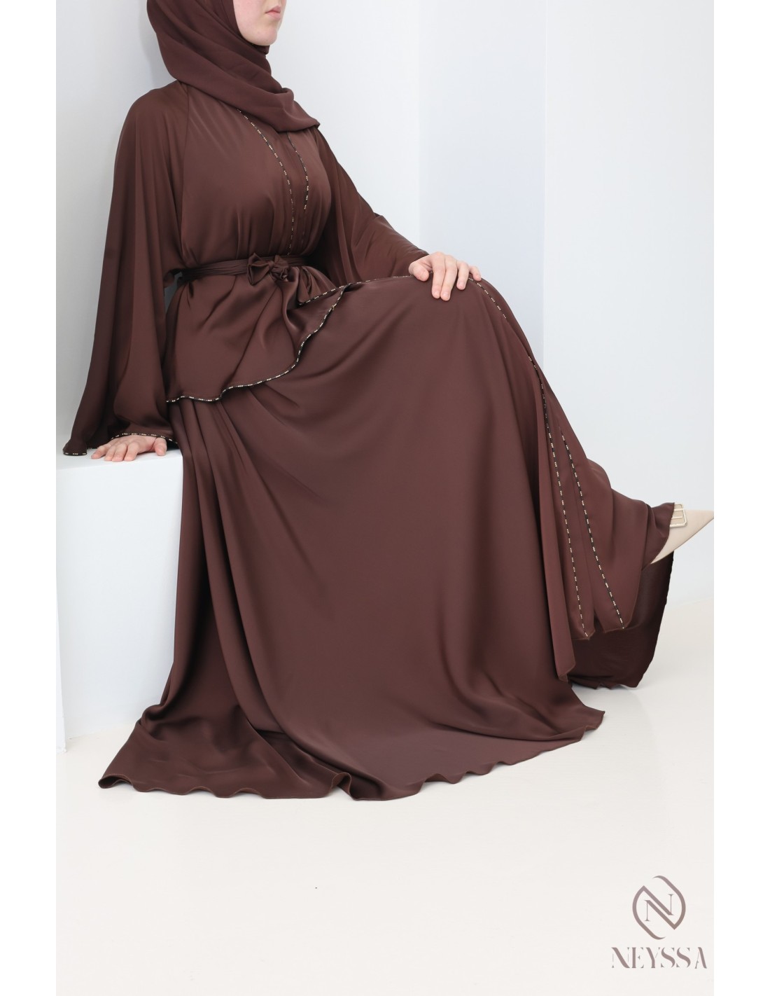 Abaya Dubai Luxus-Kimono, ausgestellt, Azmira Schokoladenbraun