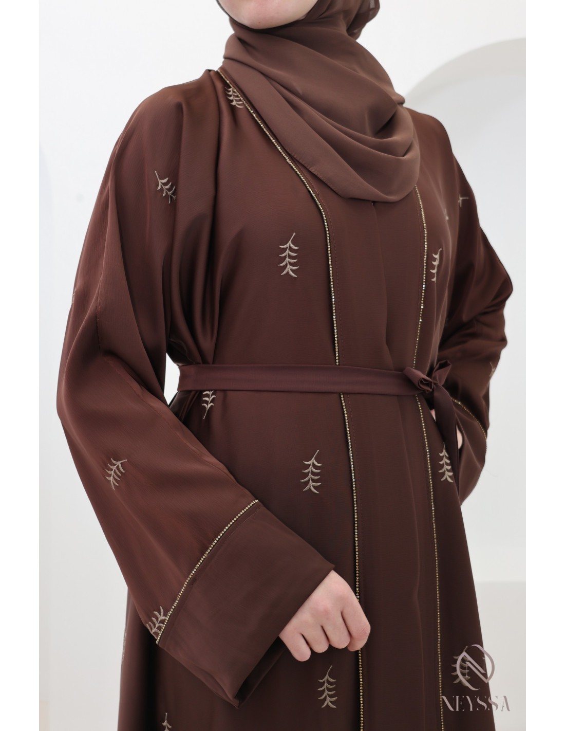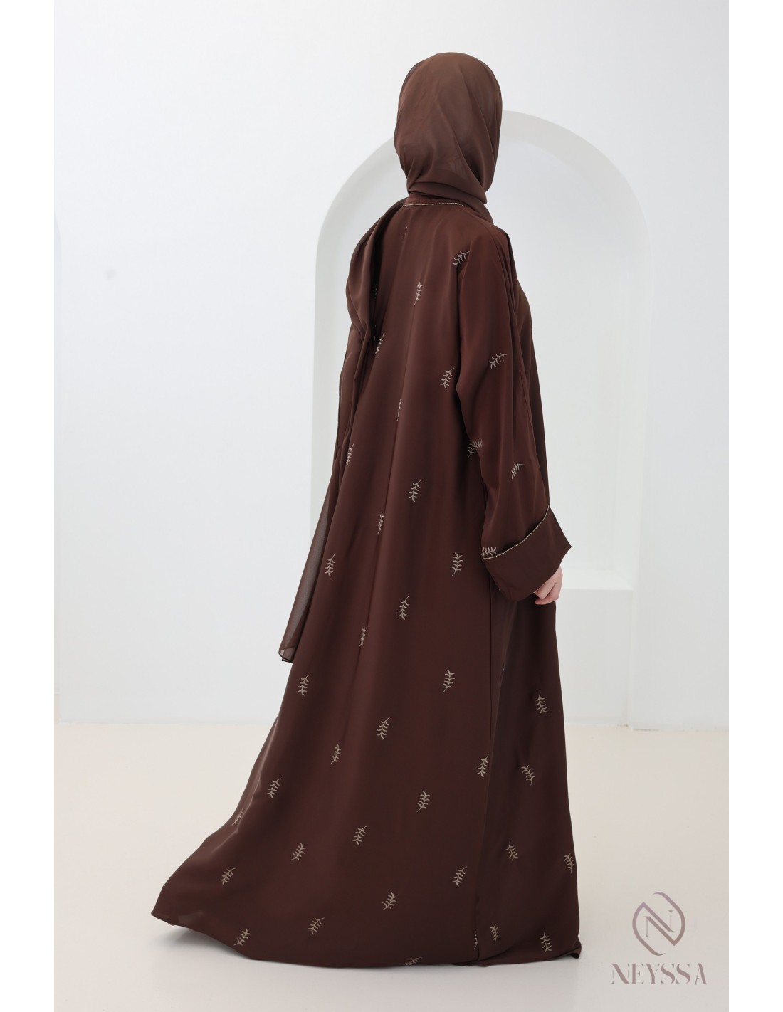 Damen-Abaya Dubai Brownie mit Blattstickerei