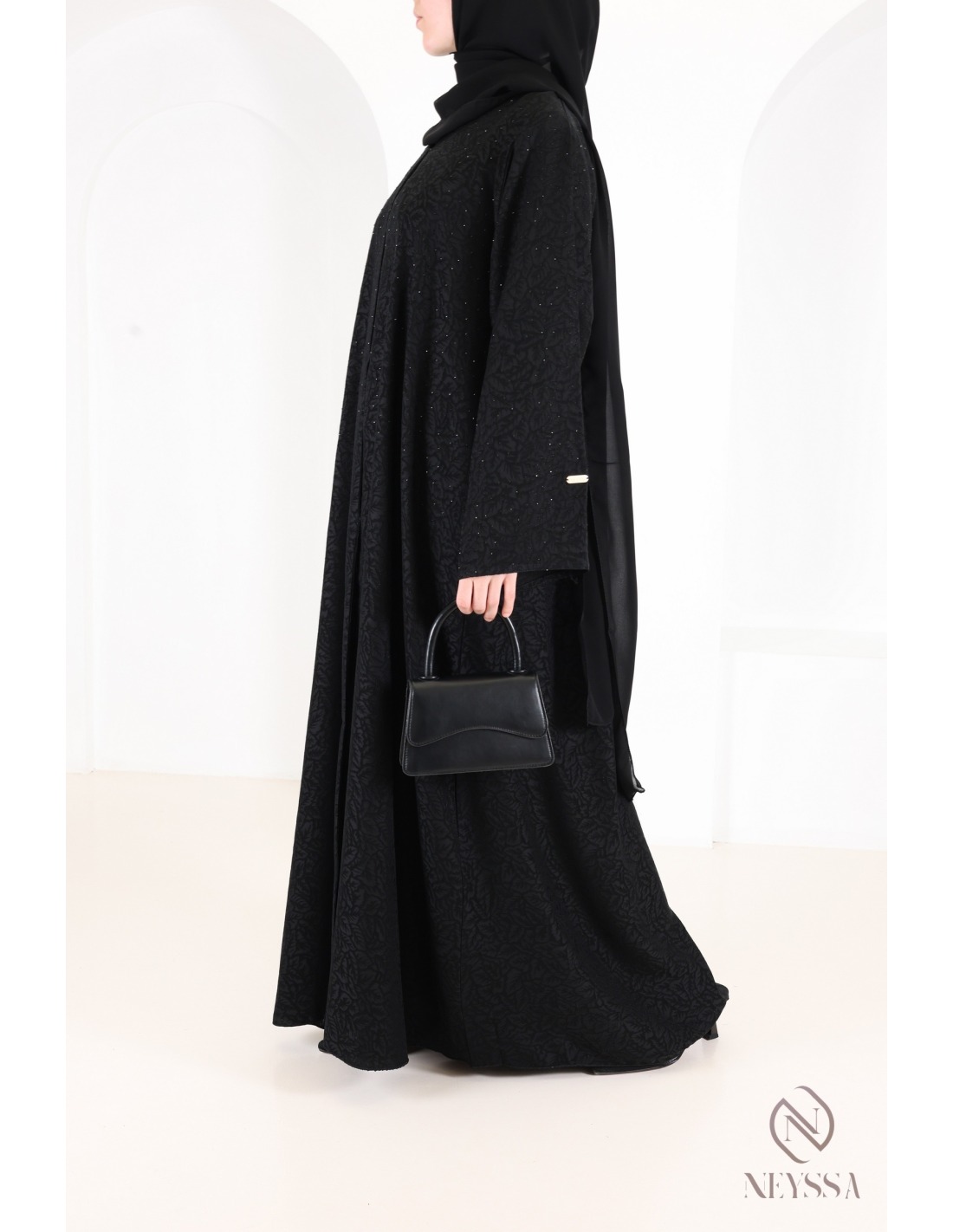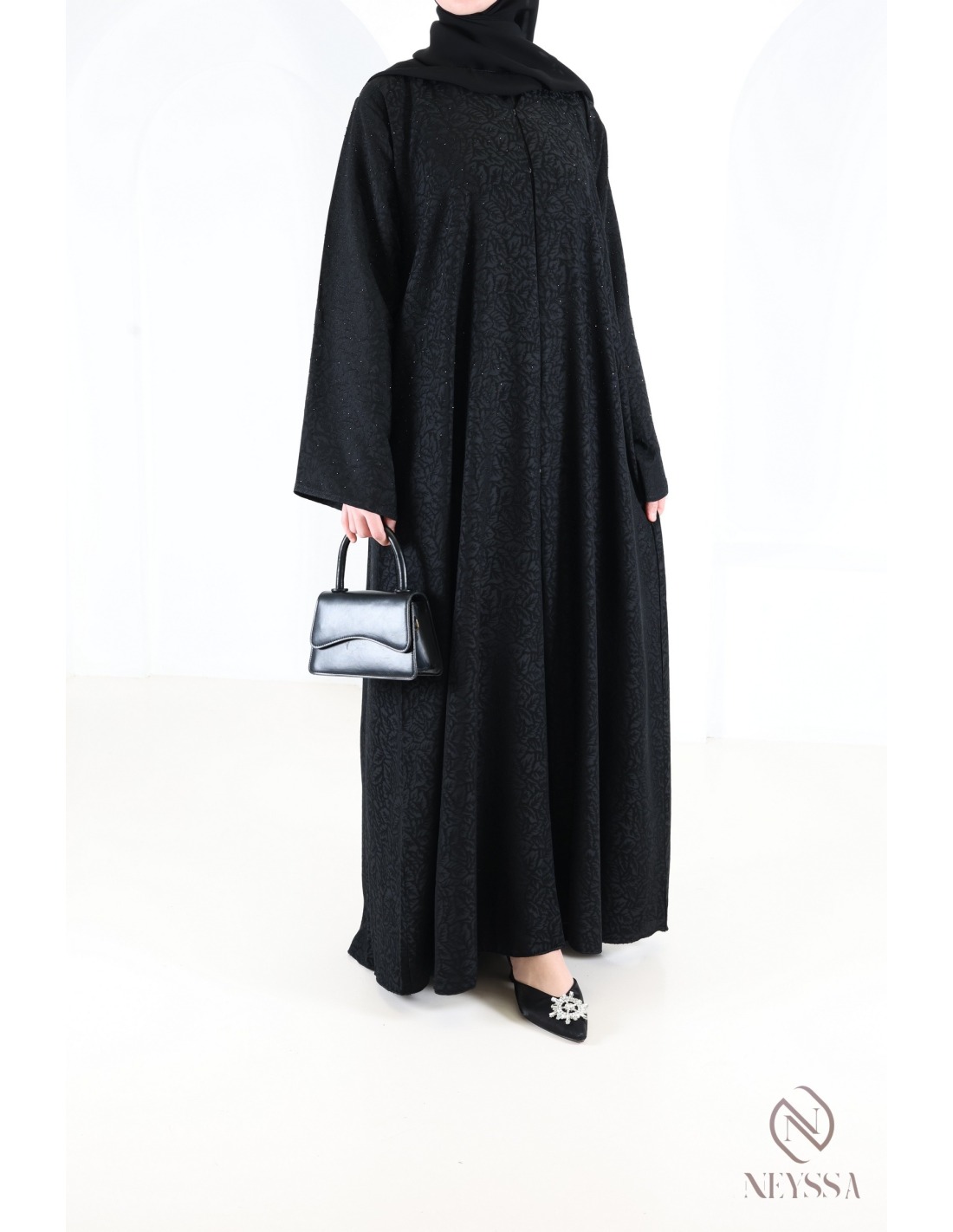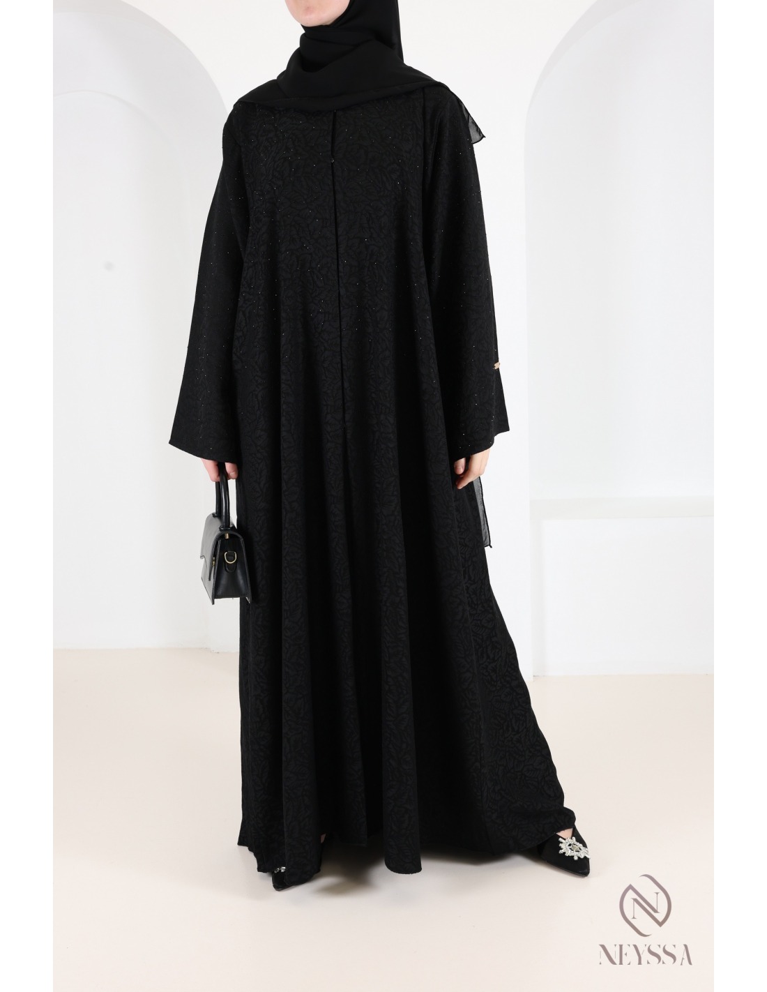 Diese in unseren Werkstätten in Dubai sorgfältig gefertigte Abaya von außergewöhnlich hoher Qualität verströmt unvergleichlichen Charme.