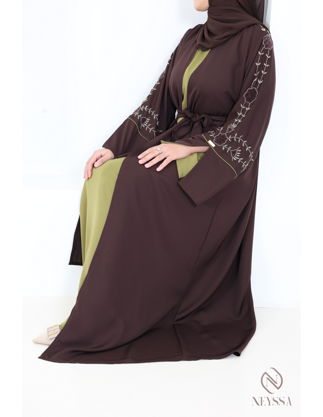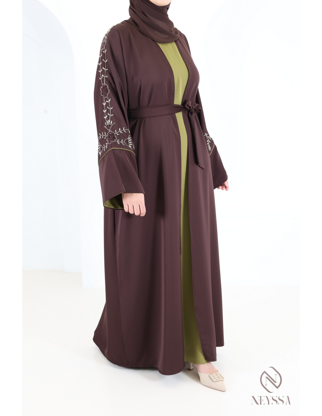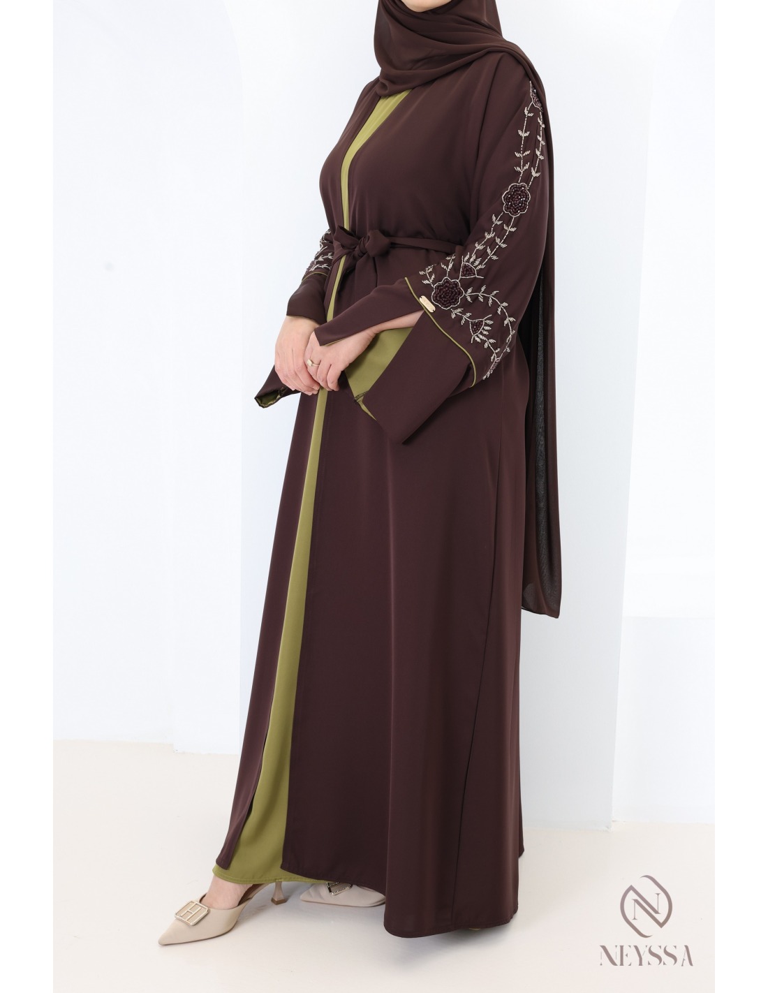 Sie werden sich in die 4-teilige Abaya Kimono Dubai in Schokoladenbraun von Nidah verlieben: