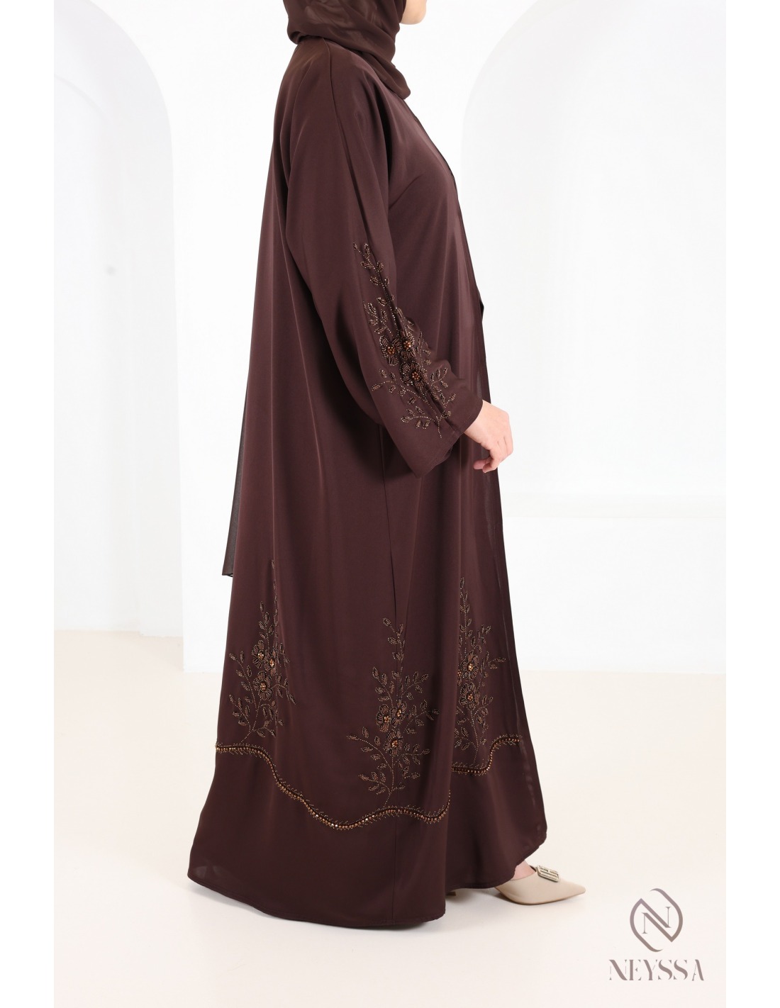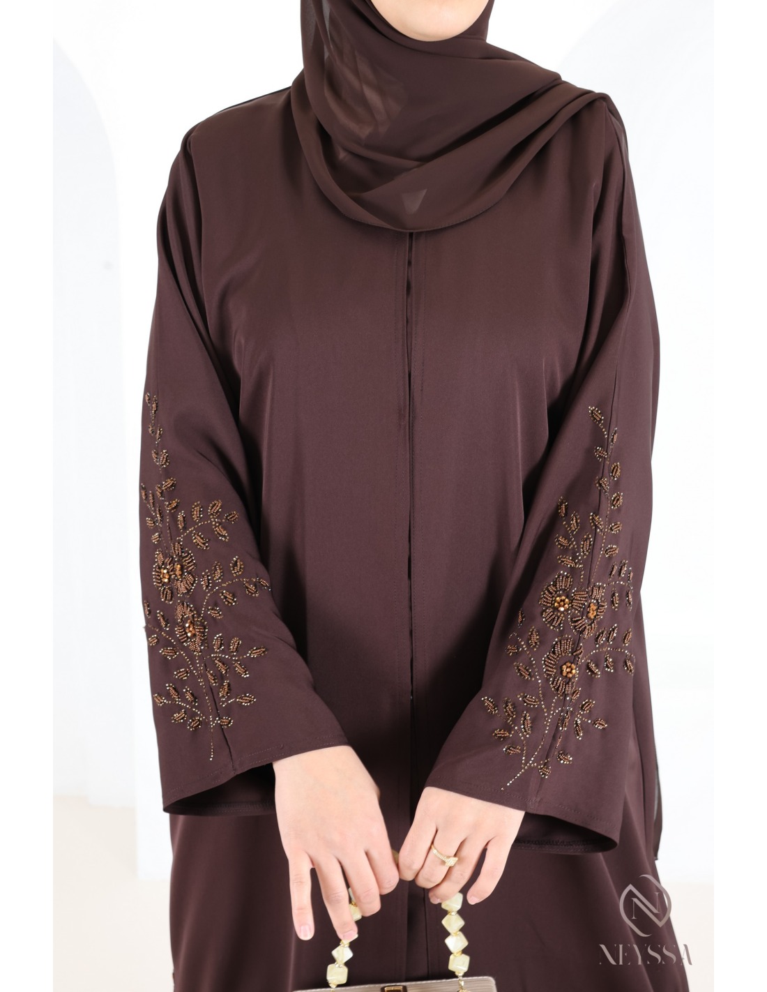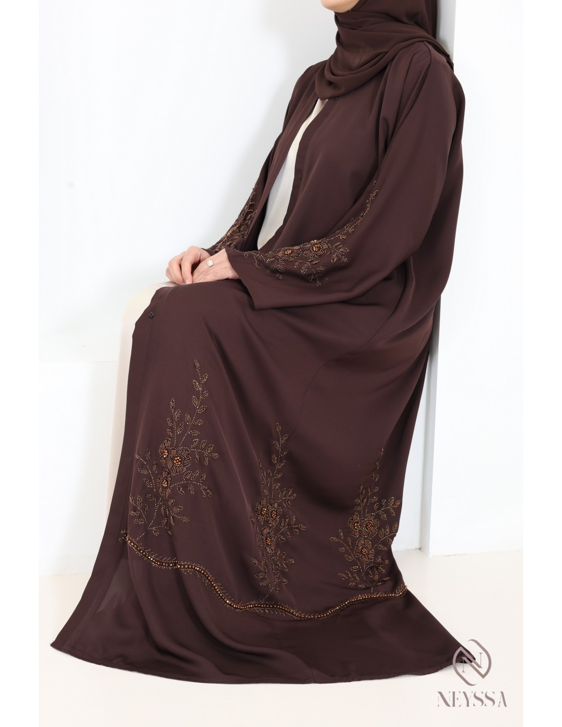 Sie werden der mit Perlen bestickten Abaya Dubai in der Farbe „Chocolat Nidah“ verfallen: