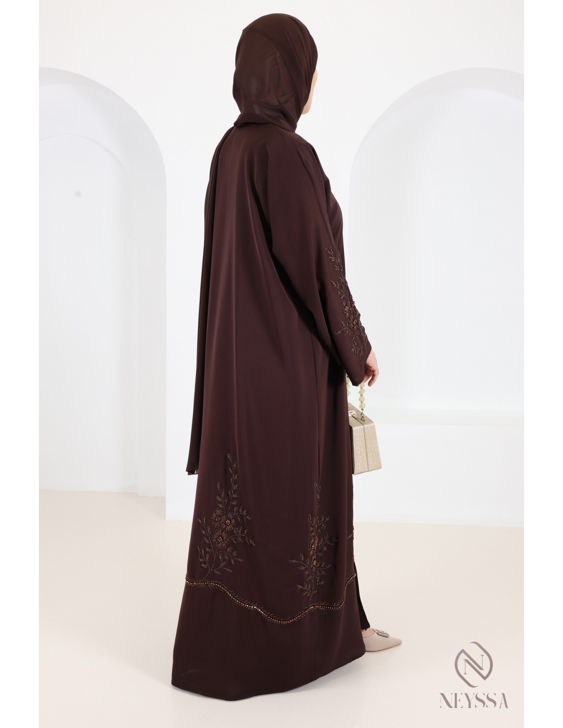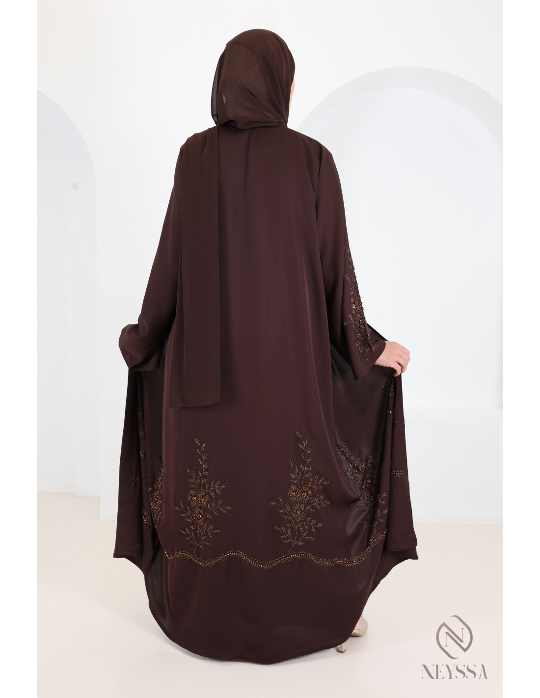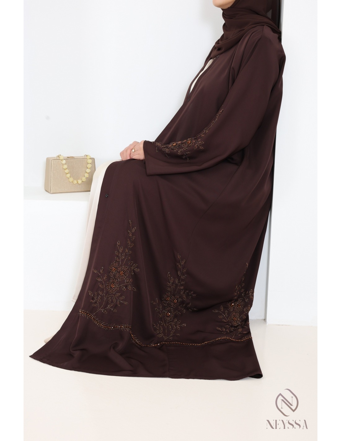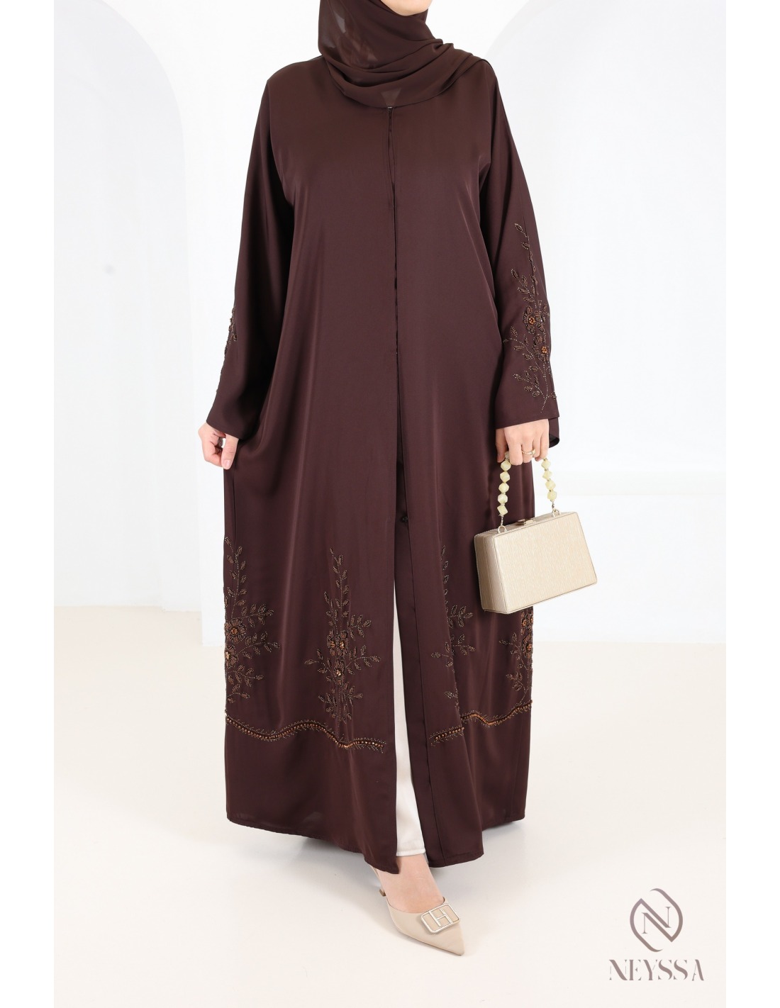 Sie werden der mit Perlen bestickten Abaya Dubai in der Farbe „Chocolat Nidah“ verfallen: