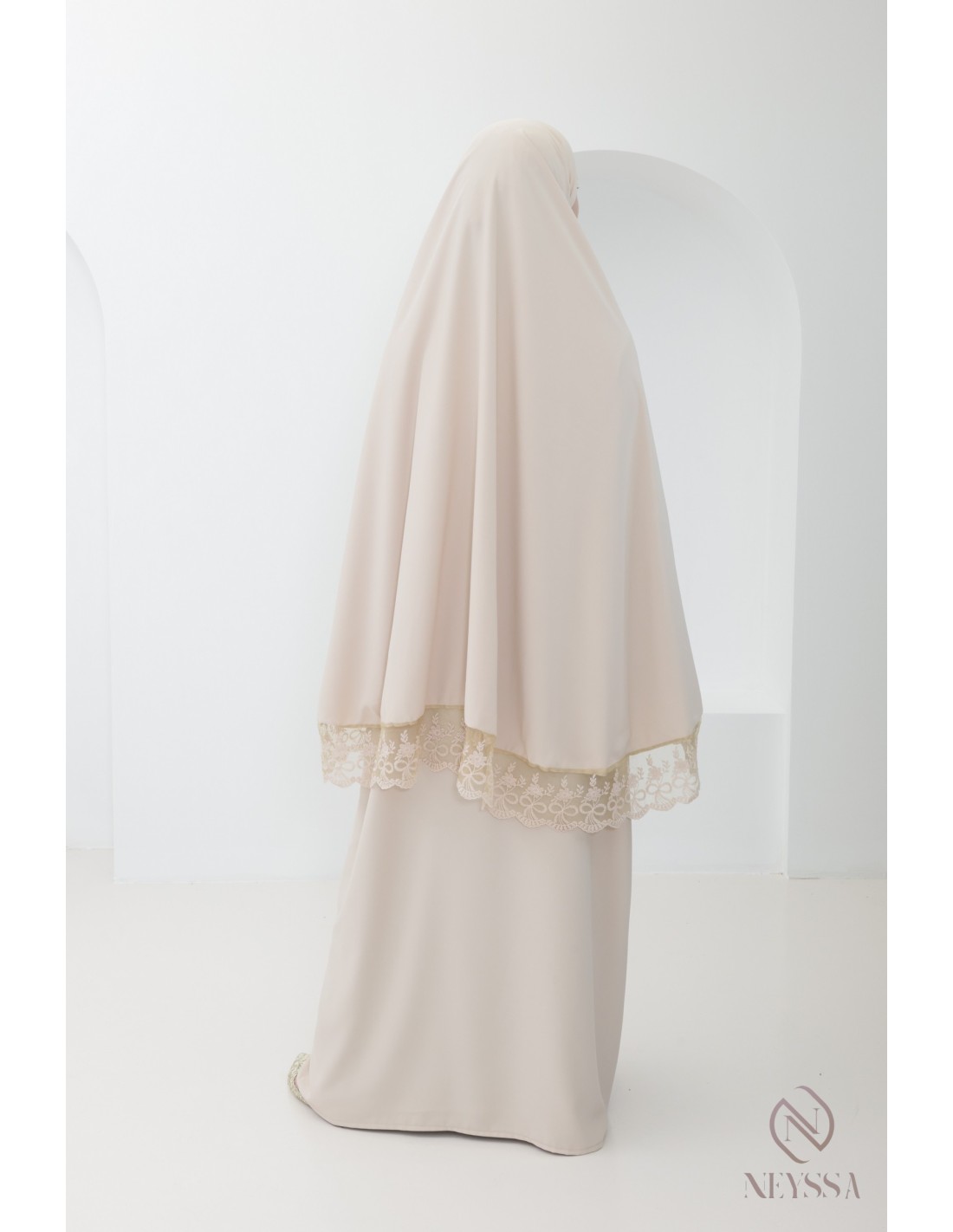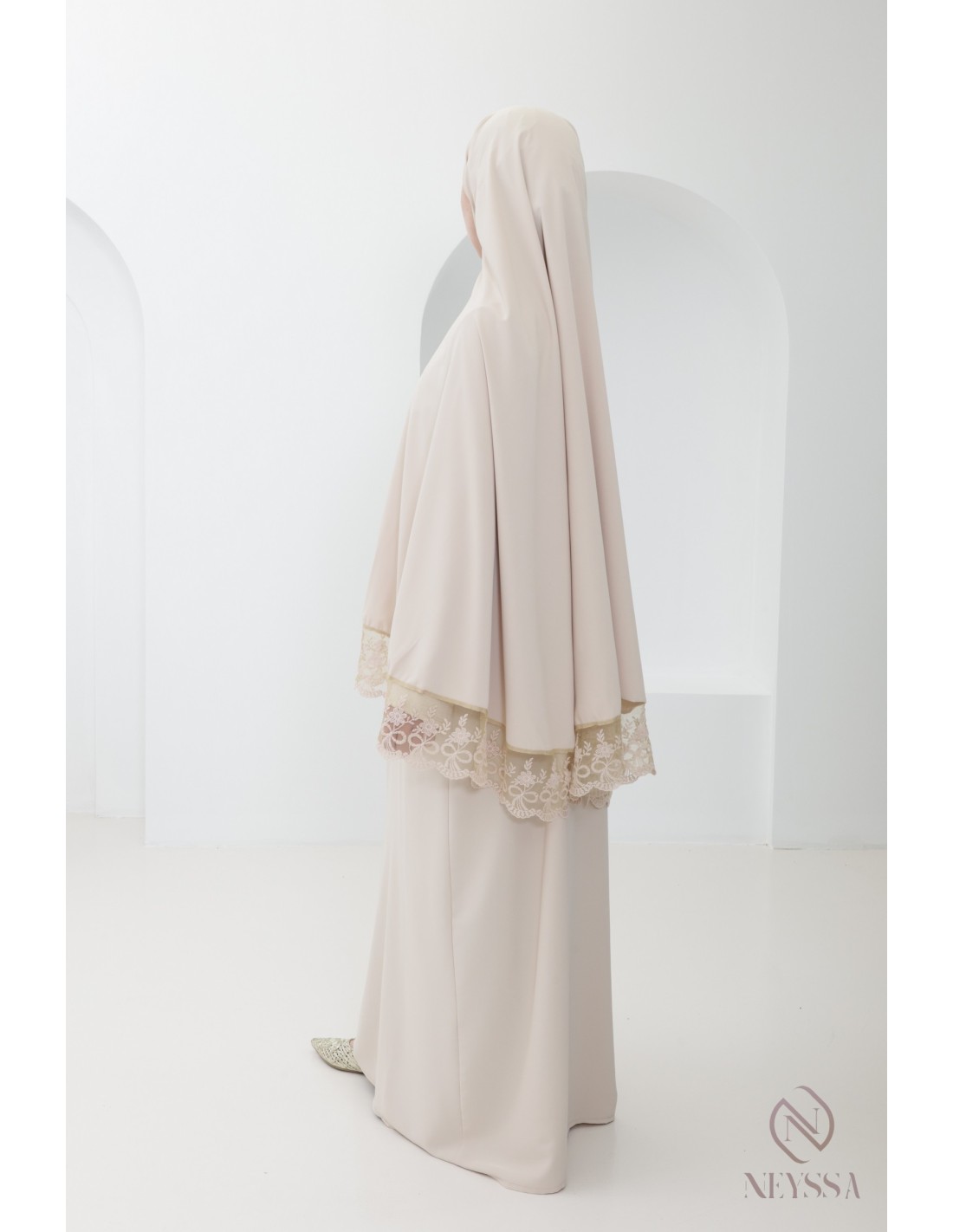 Gebetsgewand mit integriertem Khimar und Spitze