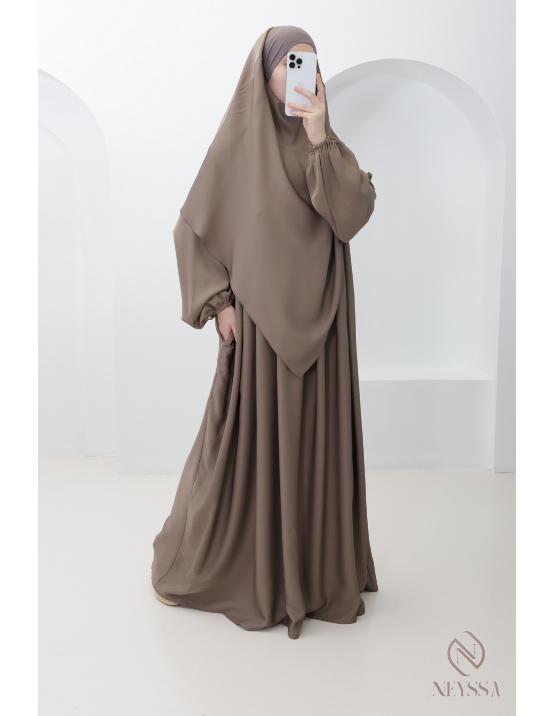Abaya-Khimar-Set Marwâa Taupe