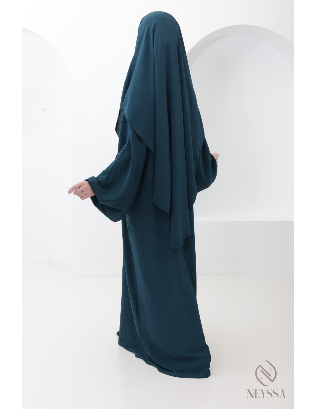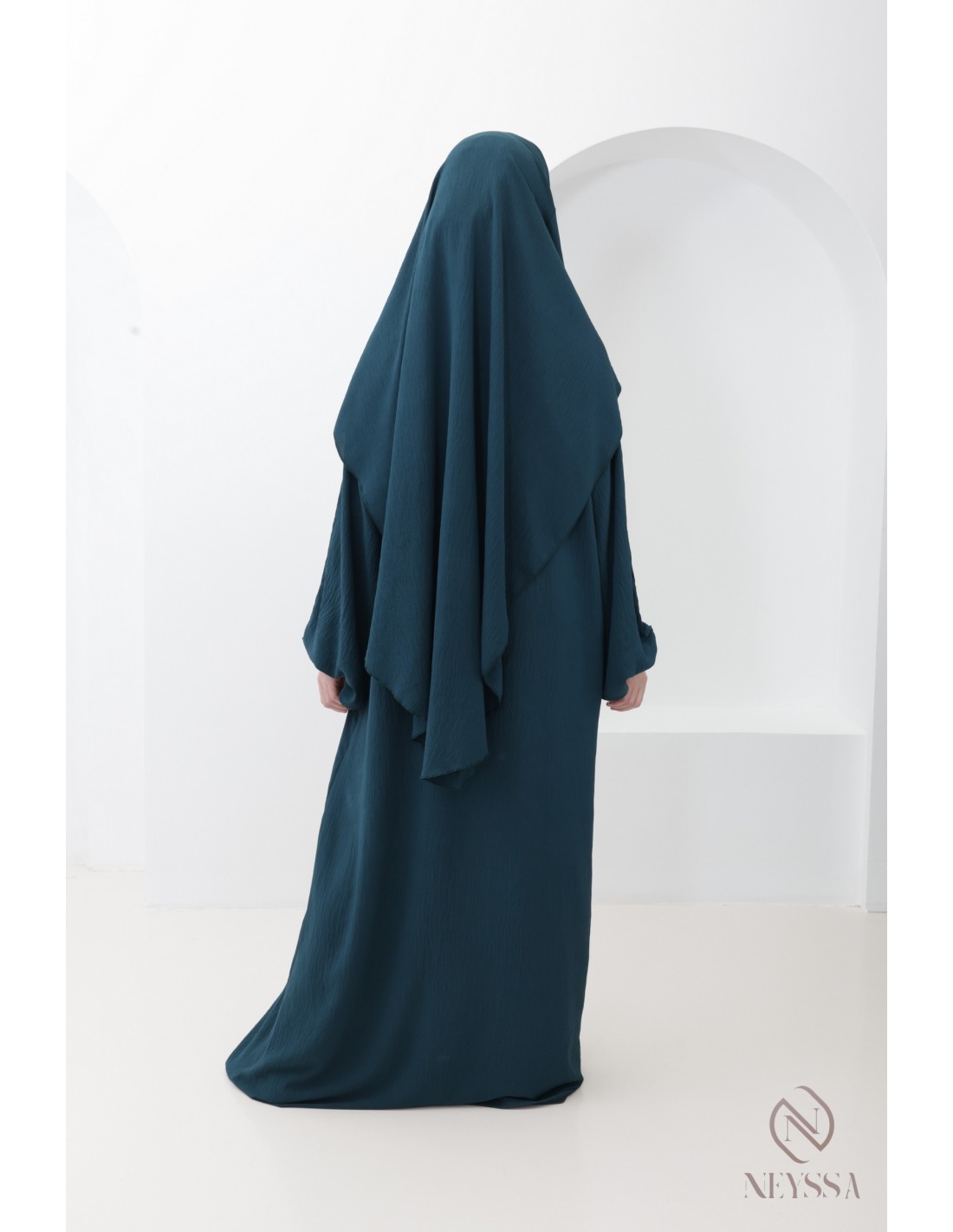 Dieses Ensemble aus Jazz-Abaya und Khimar für Damen eignet sich sowohl für Ihre täglichen Ausflüge als auch für Ihre Besuche in der Moschee oder während des Tarawih im Ramadan.