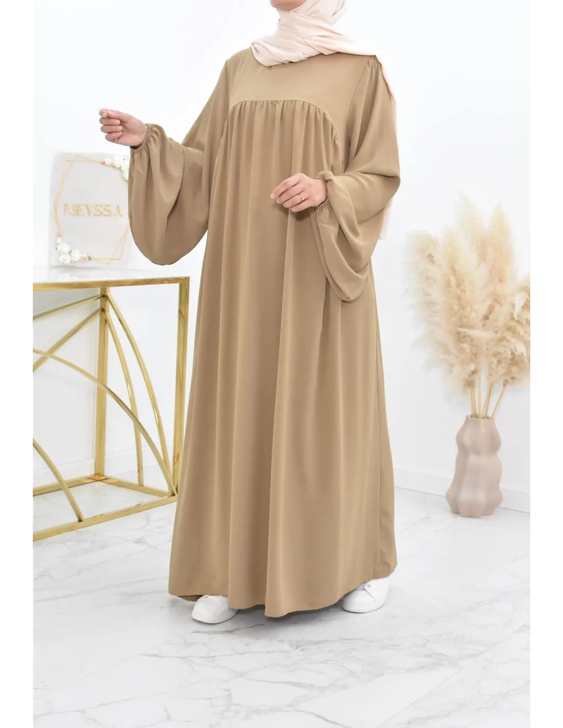 • Die fließende, ausgestellte Abaya hat ihren Reiz in der Weite des Kleides.