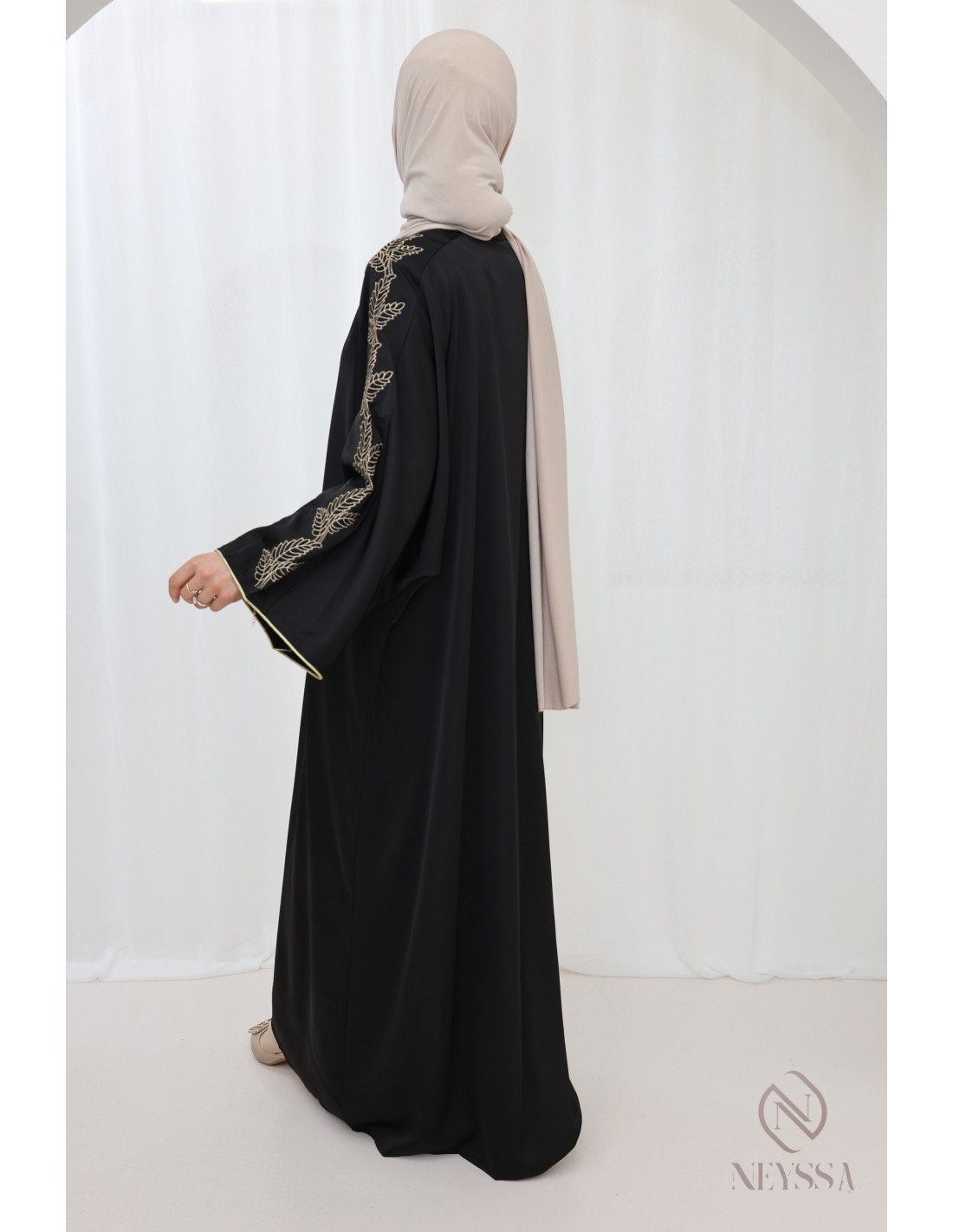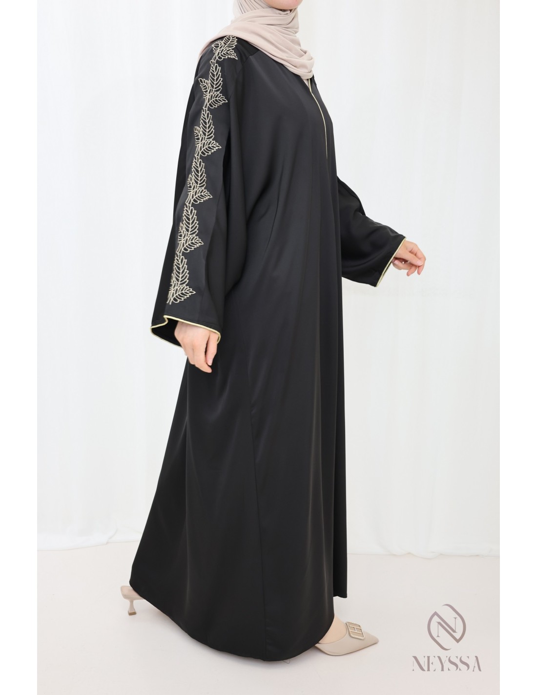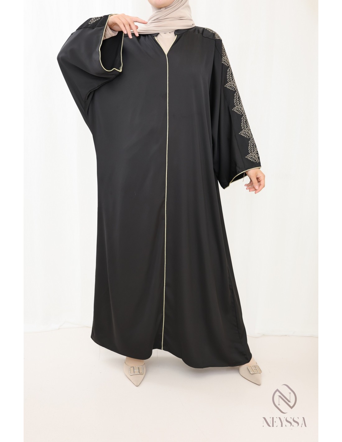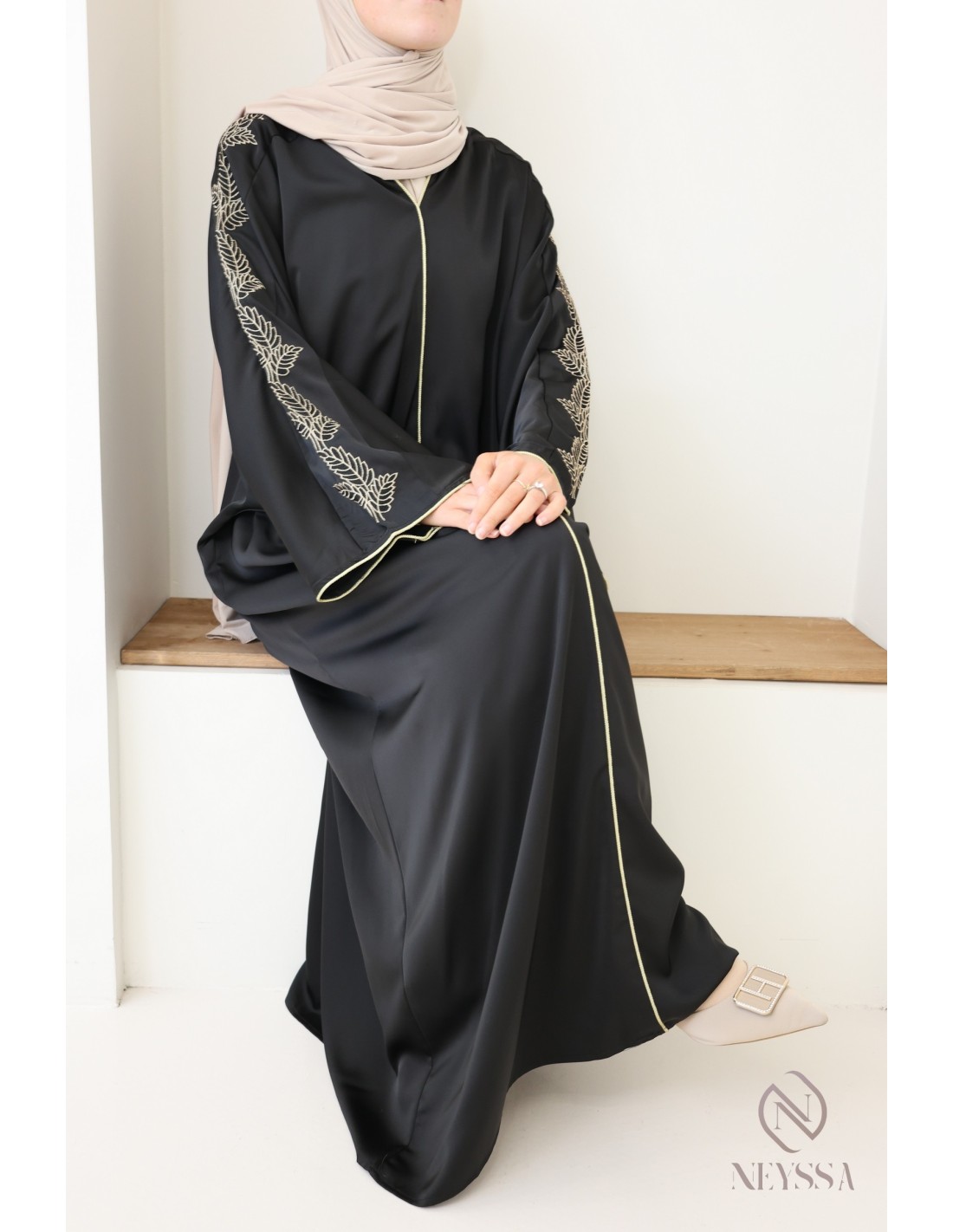 Abaya lange schwarze Frau, Stickerei auf den Ärmeln