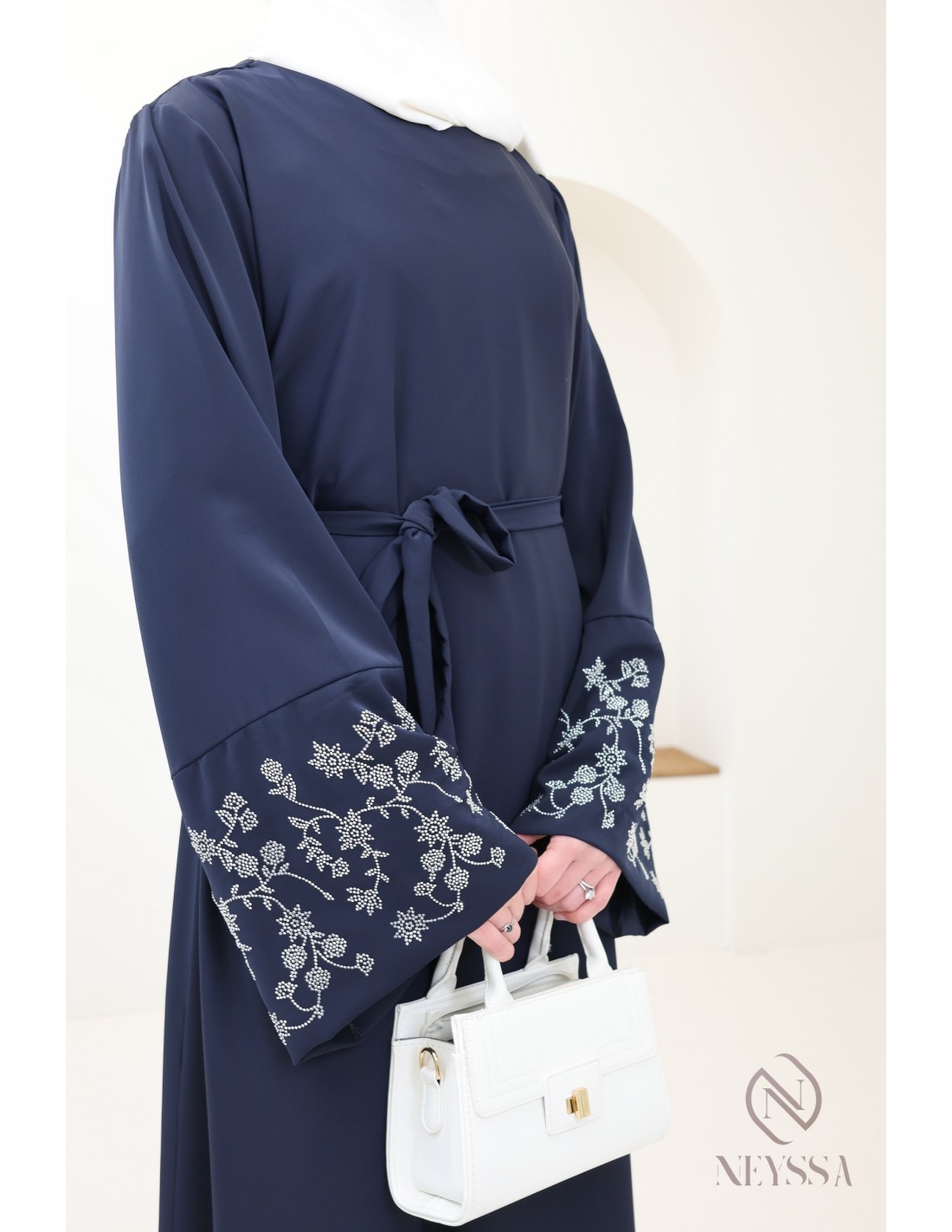 Abaya für Frauen Hijabi mit Ärmeln aus Strass