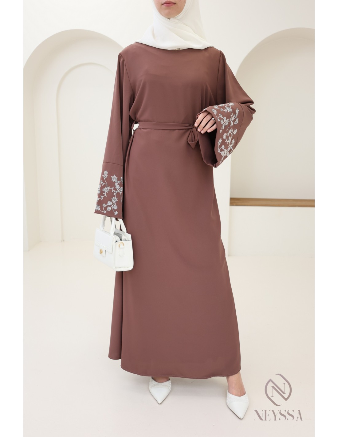 • Feinwäsche : Um die Weichheit und die Farbe zu erhalten, waschen Sie die Abaya in kaltem oder lauwarmem Wasser.