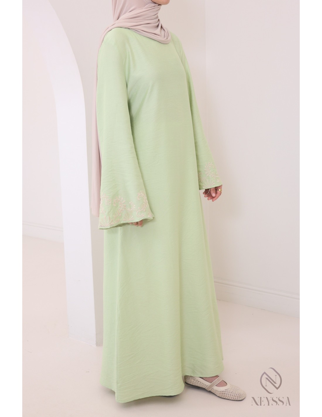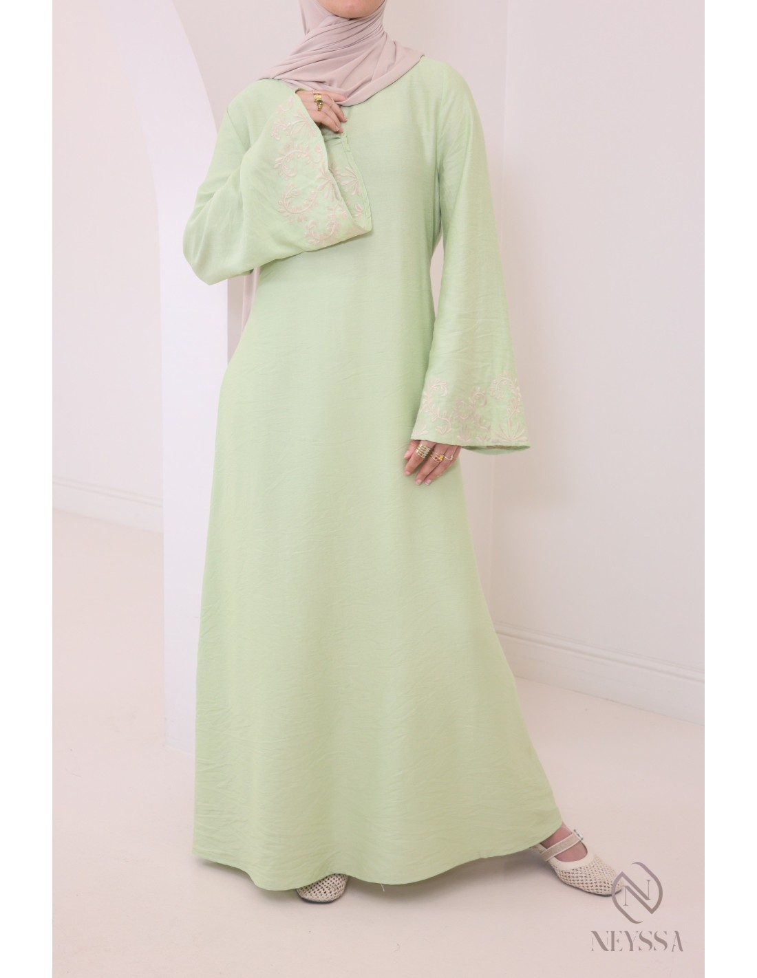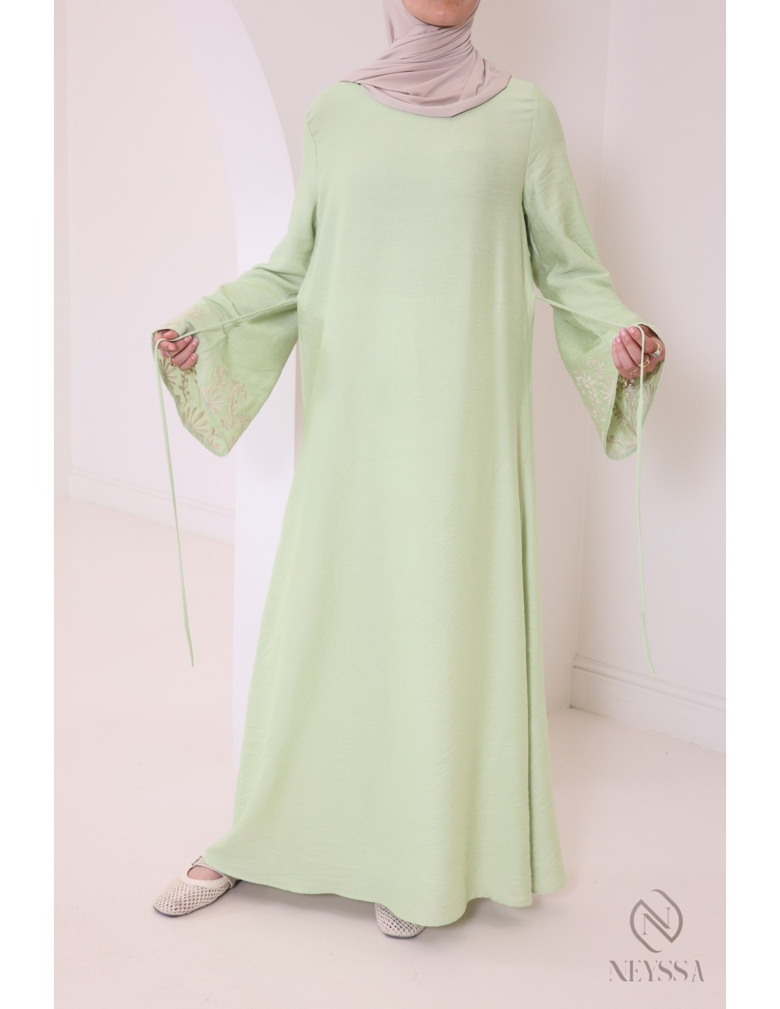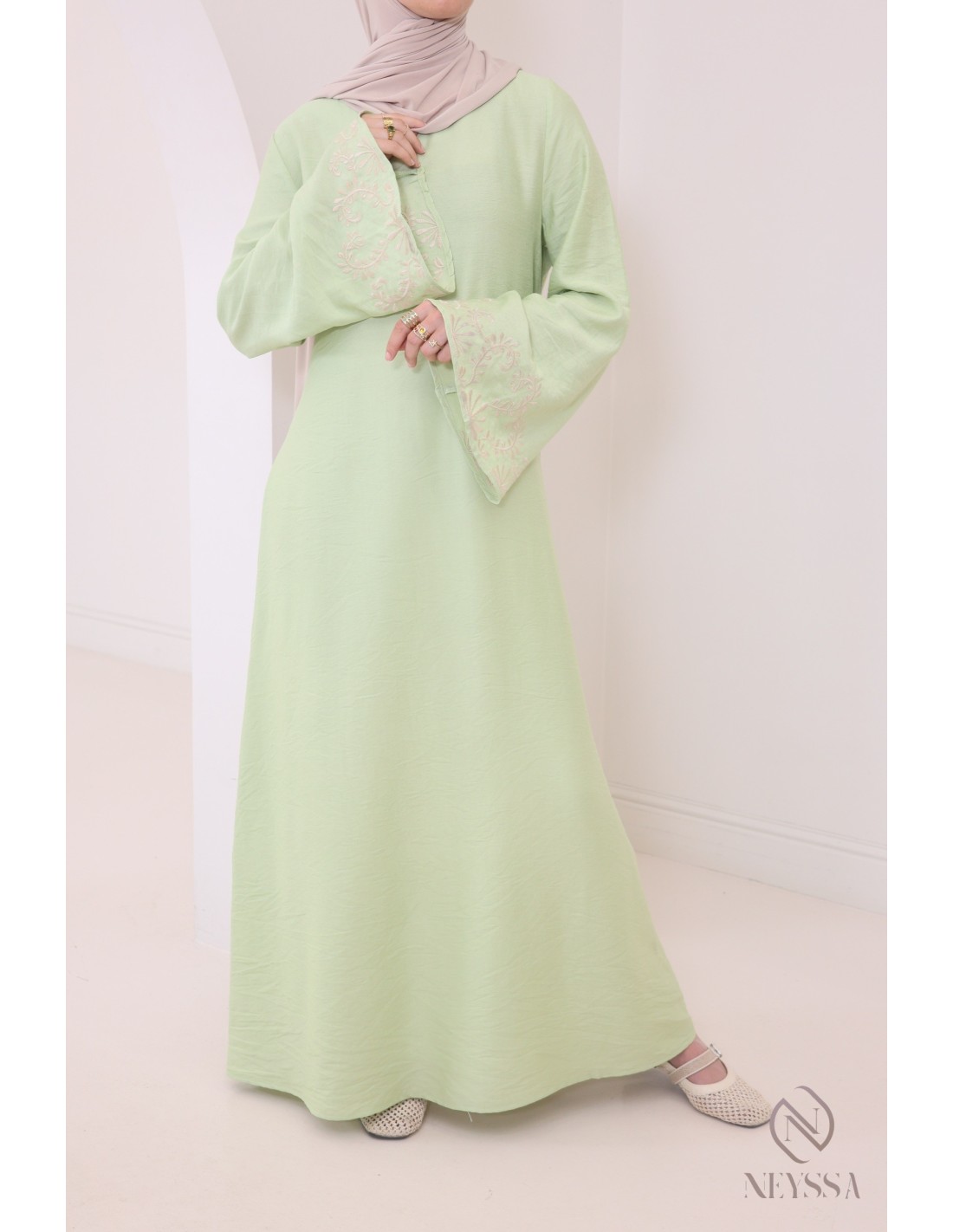 Lange, bestickte Abaya mit ausgestellten Ärmeln für verschleierte Frauen