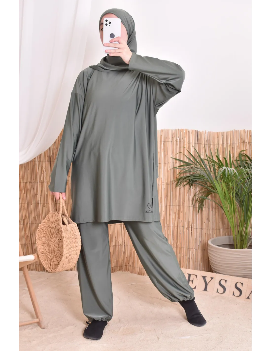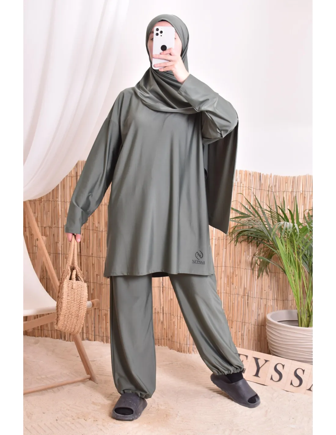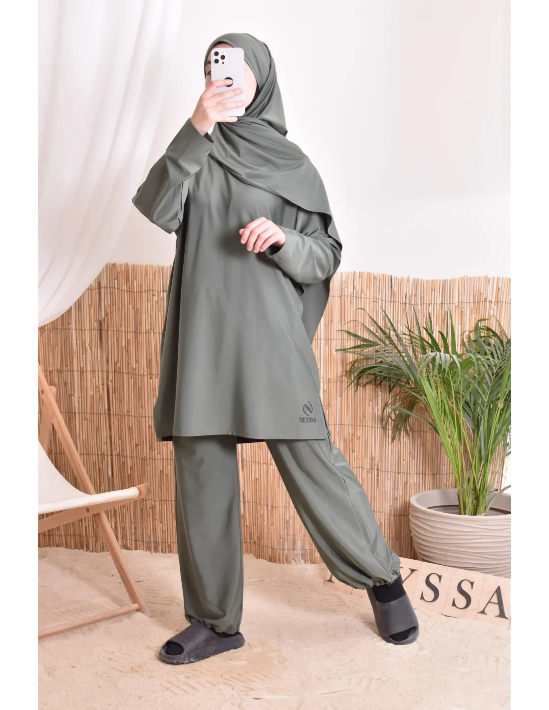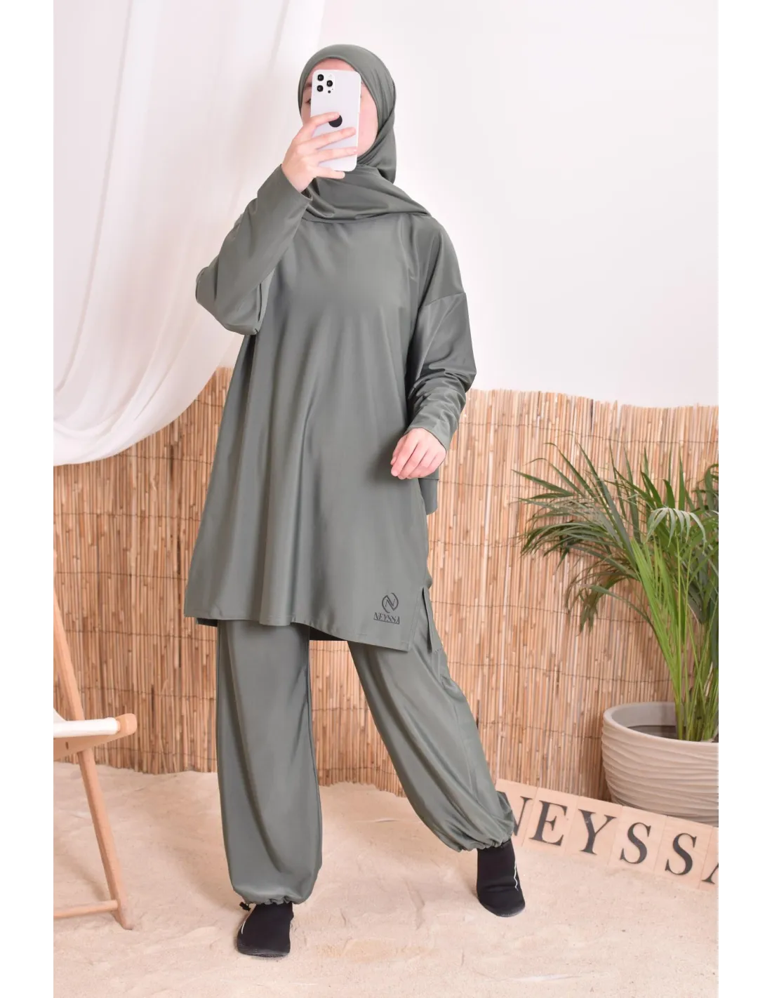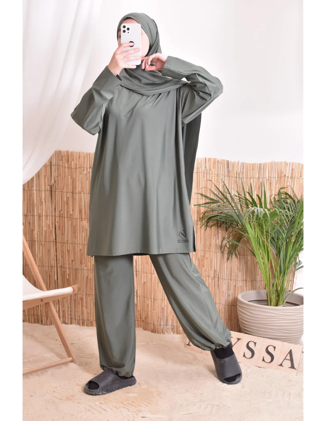 Burkini Khaki mit Badehijab Neyssa Oberbekleidung