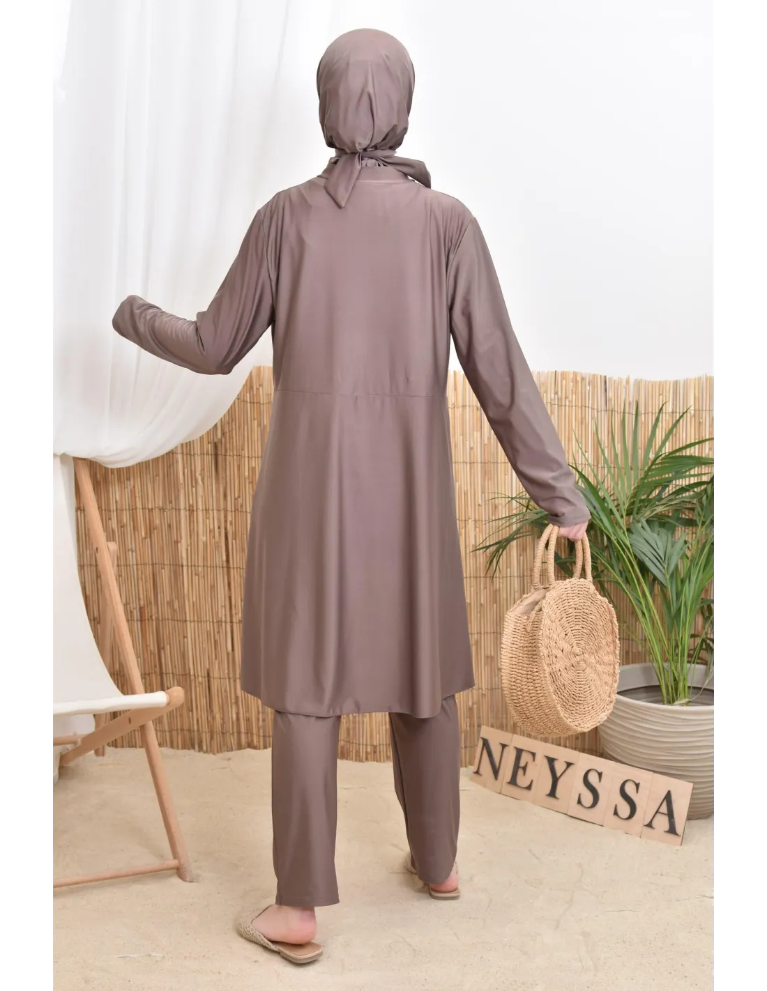 Burkini für Hijabi in dunklem Taupe, ein Must-have.