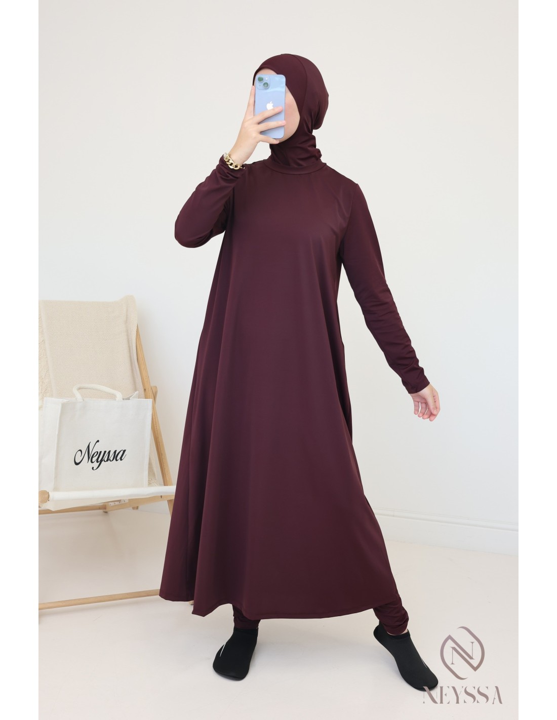 Burkini lang Hijab zum Überziehen Al Nakheel Burgundy