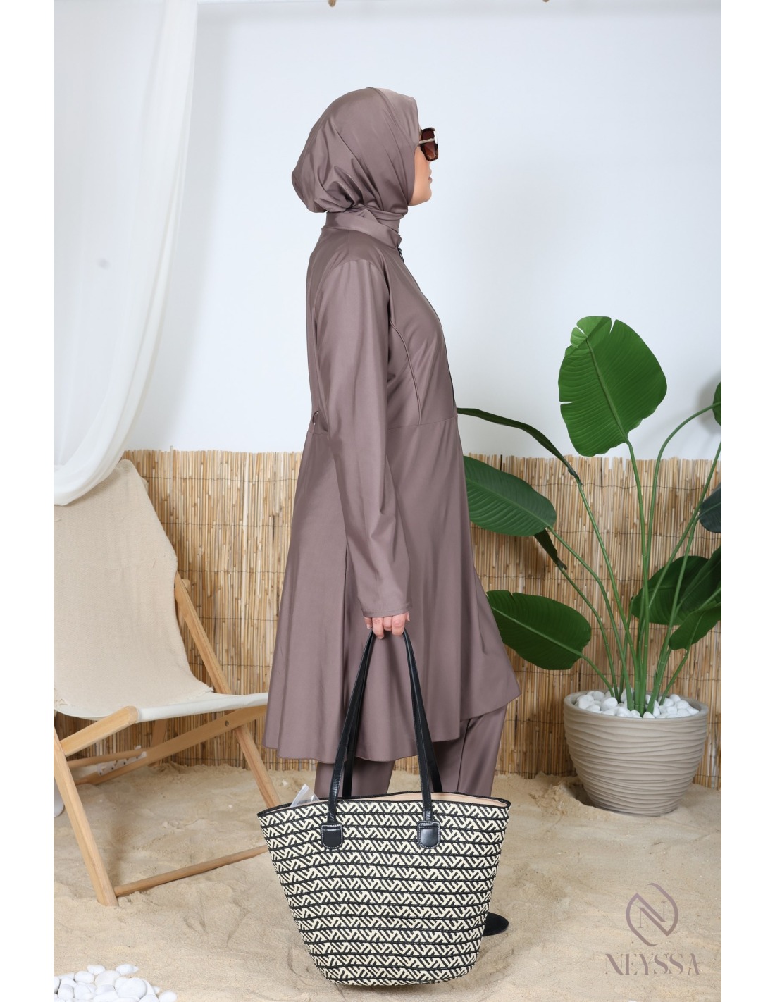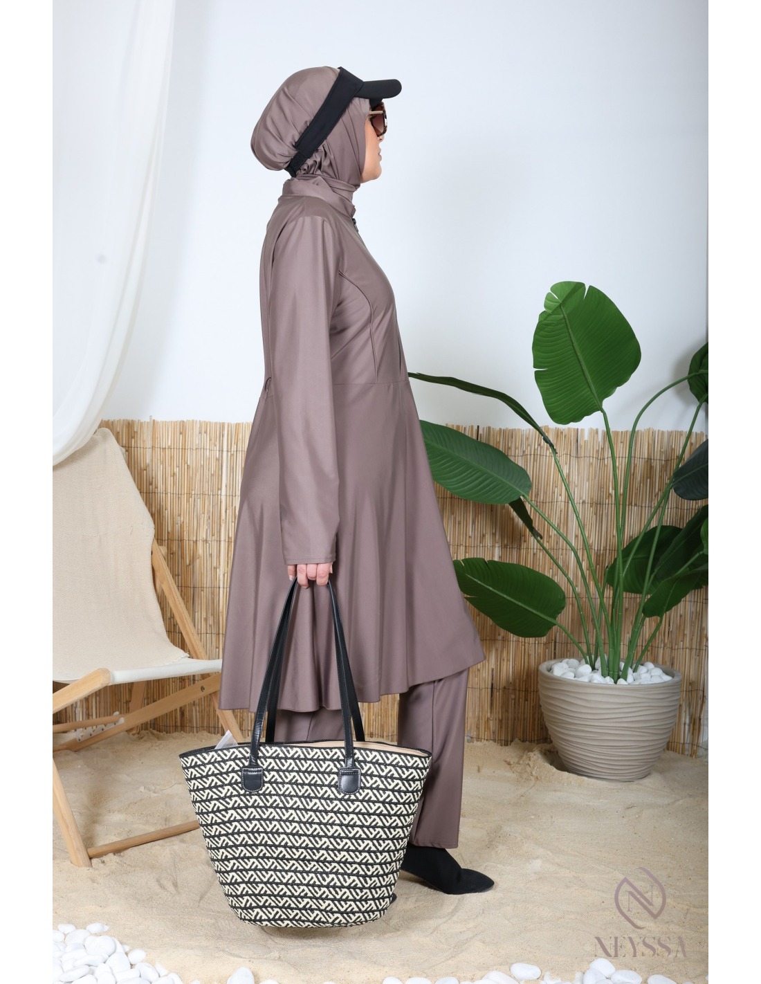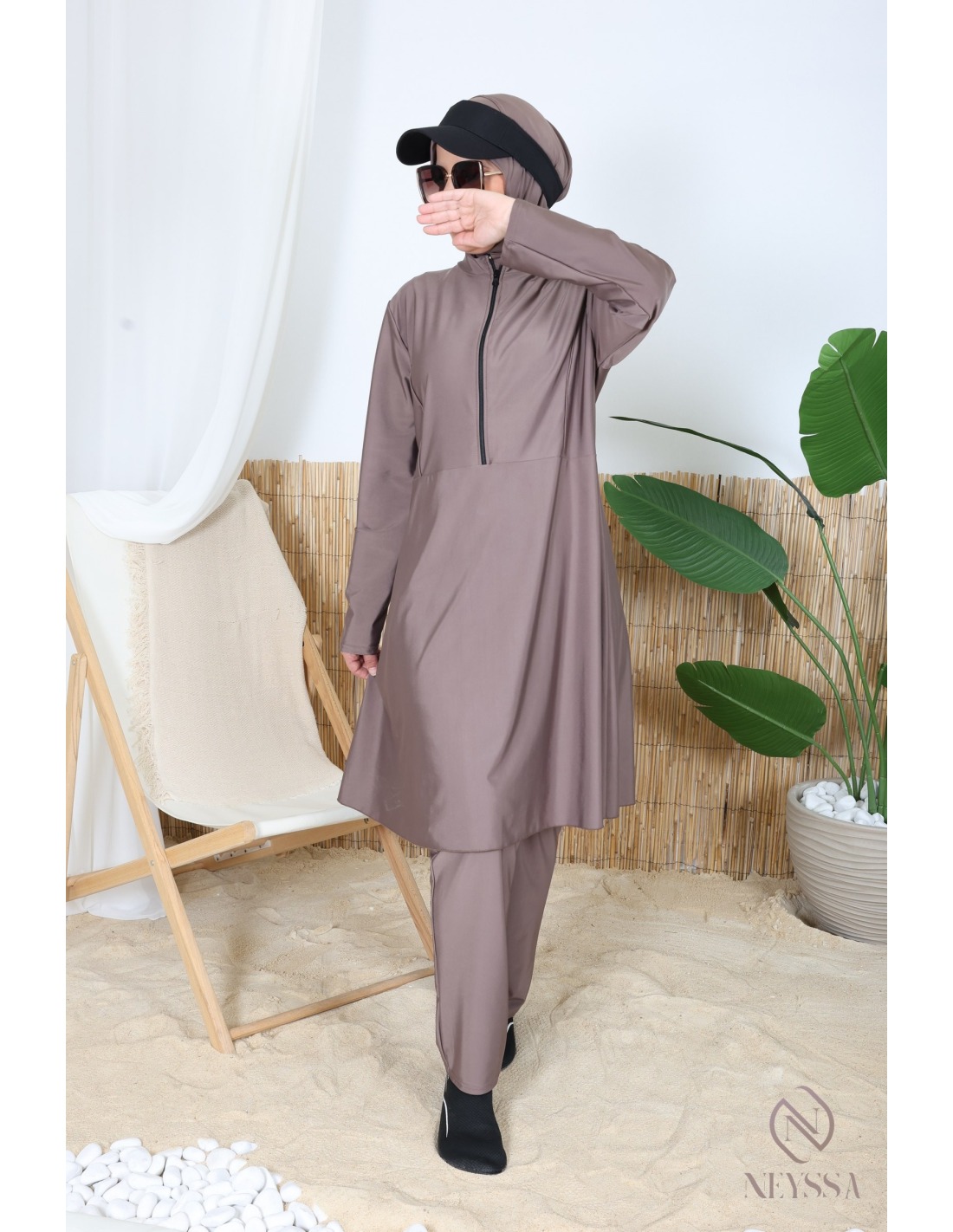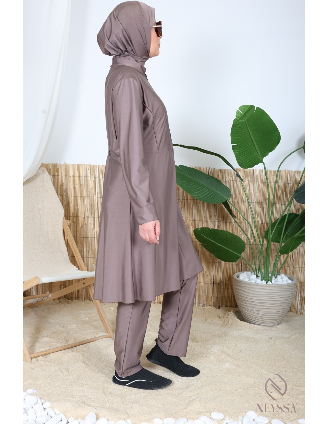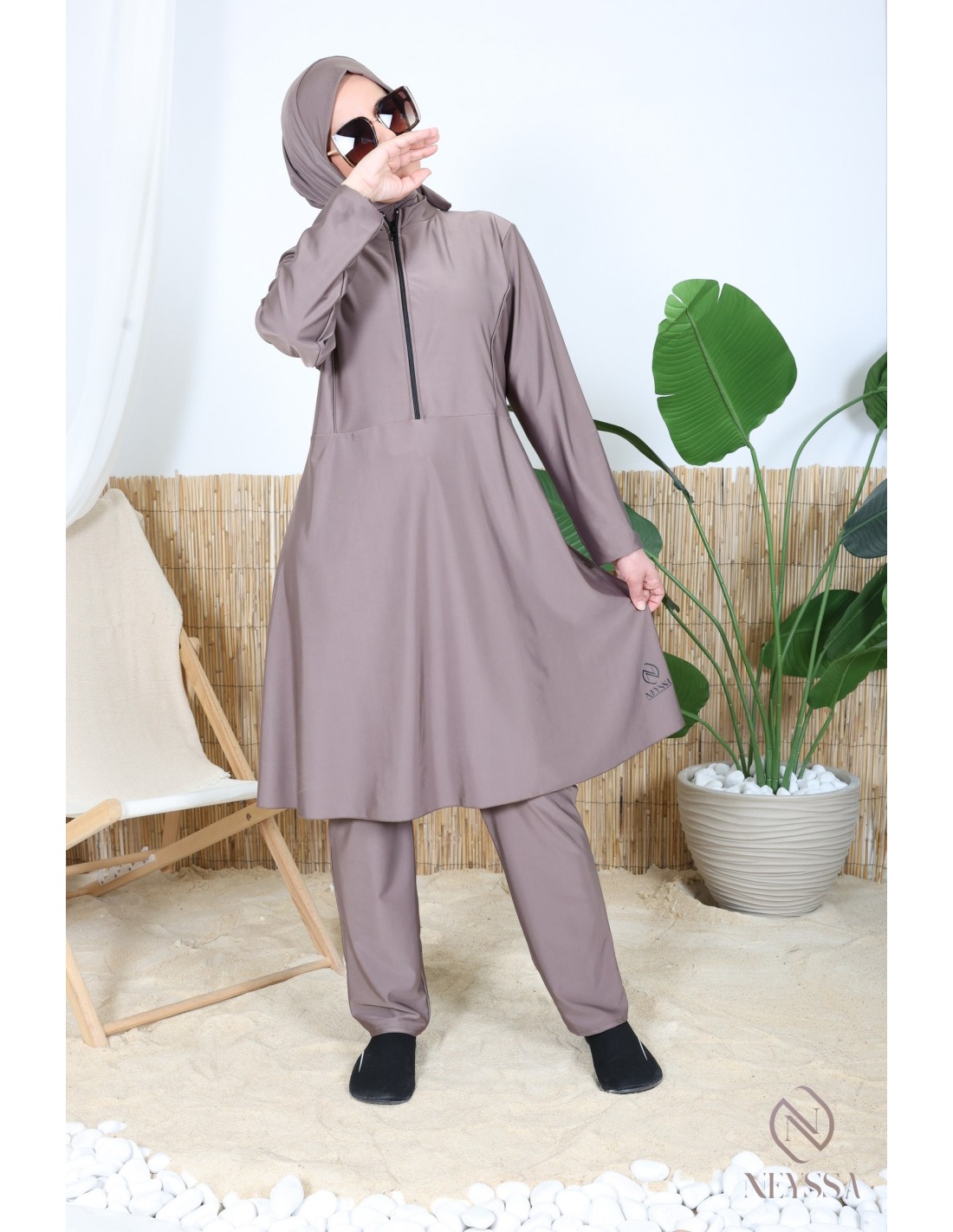 Burkini für Hijabi in dunklem Taupe, ein Must-have.