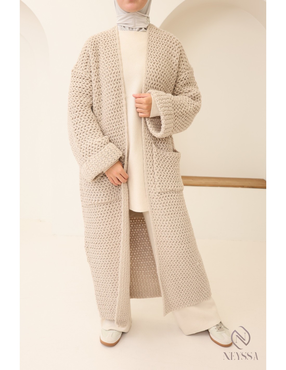 - Weite Passform: Die Strickjacke ist weit geschnitten, sodass Sie sich darin frei bewegen können, während sie Ihre Silhouette elegant bedeckt und sich somit perfekt an den Jilbab anpasst.