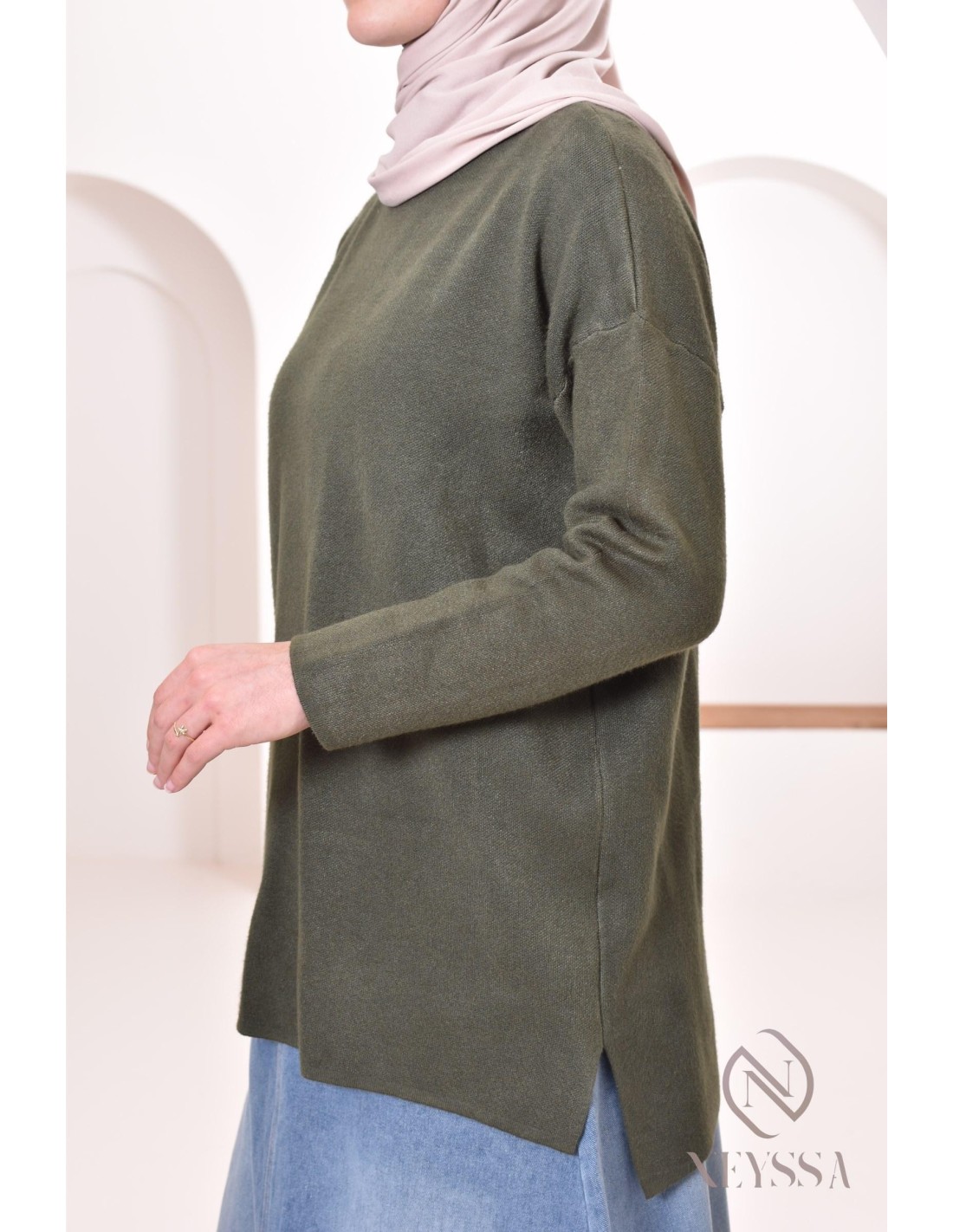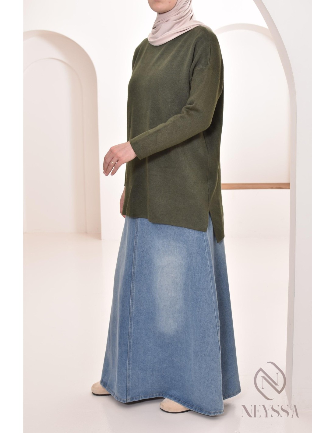 • Casual Look: Kombinieren Sie den Pullover mit einem langen, ausgestellten Jeansrock. Fügen Sie einen passenden Hijab hinzu, um einen schicken Casual Style zu kreieren, der perfekt für entspannte Tage ist. Vervollständigen Sie den Look mit Turnschuhen oder Mokassins für zusätzlichen Komfort.