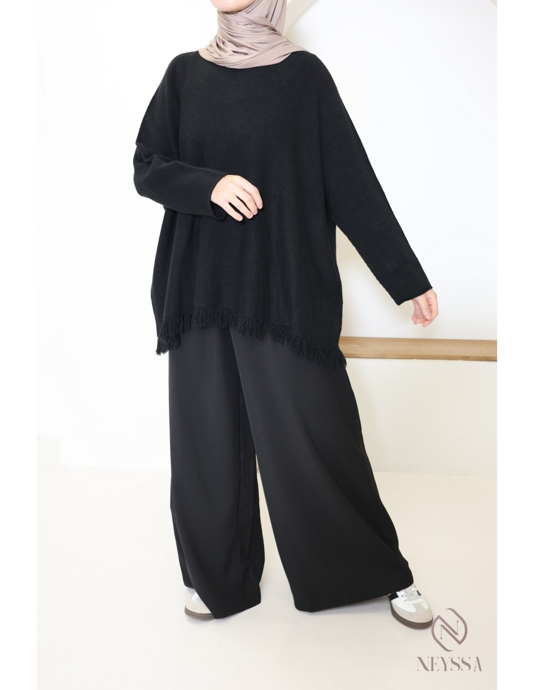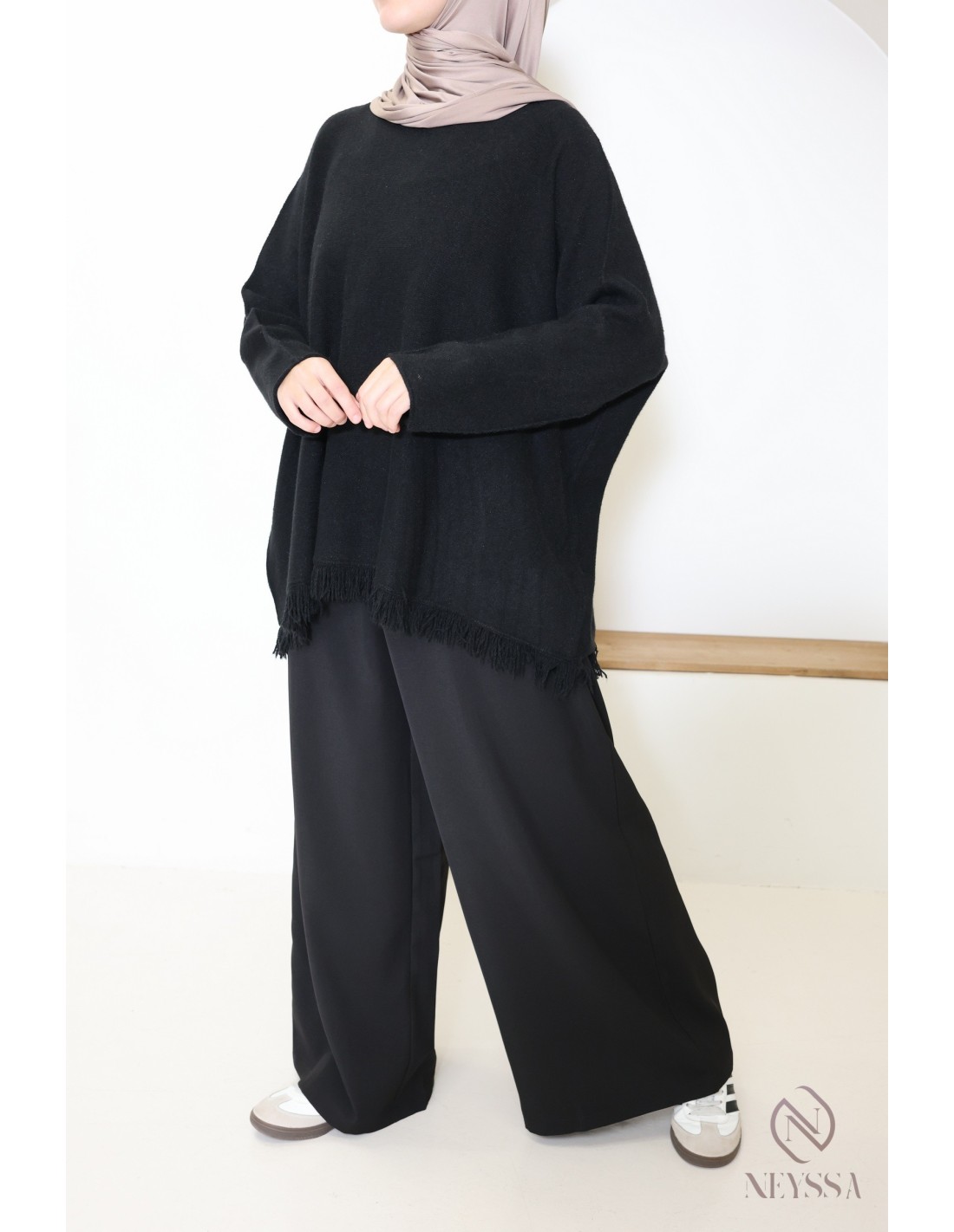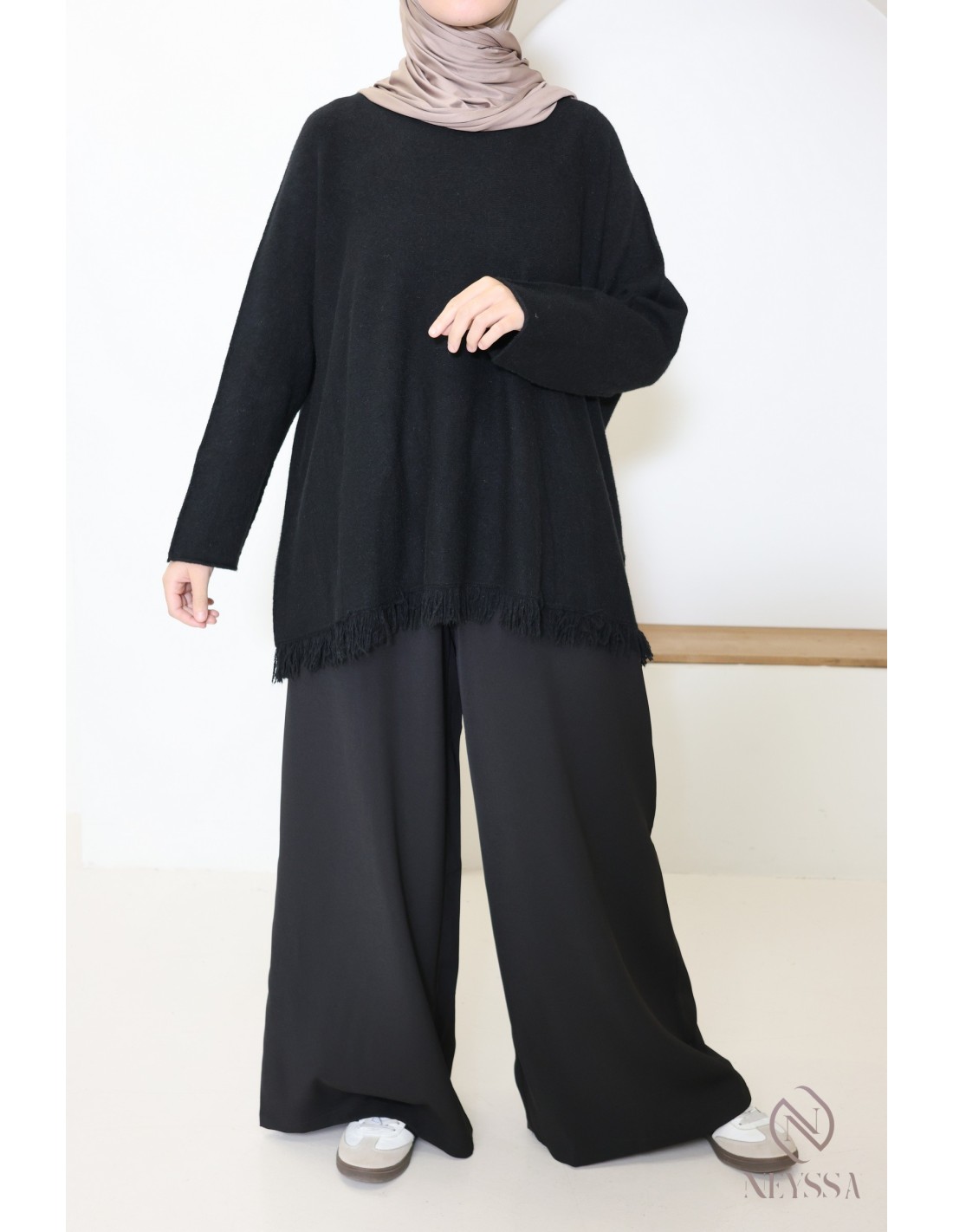 Trendiger, mittellanger Fransen-Strickpullover für Hijab-Frauen