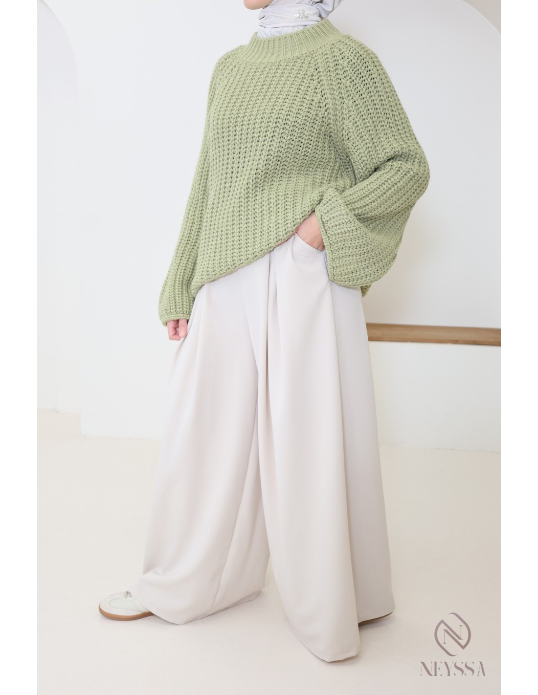 Die Schlichtheit dieses Oversize-Pullovers macht ihn zu einem vielseitigen Kleidungsstück, das sich perfekt für die Kreation verschiedener bescheidener und eleganter Looks eignet: