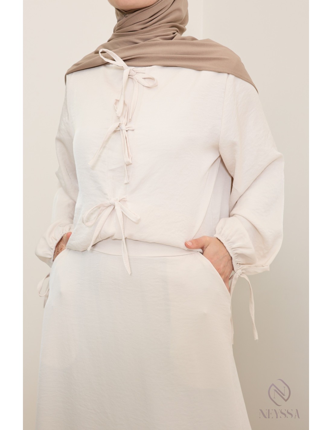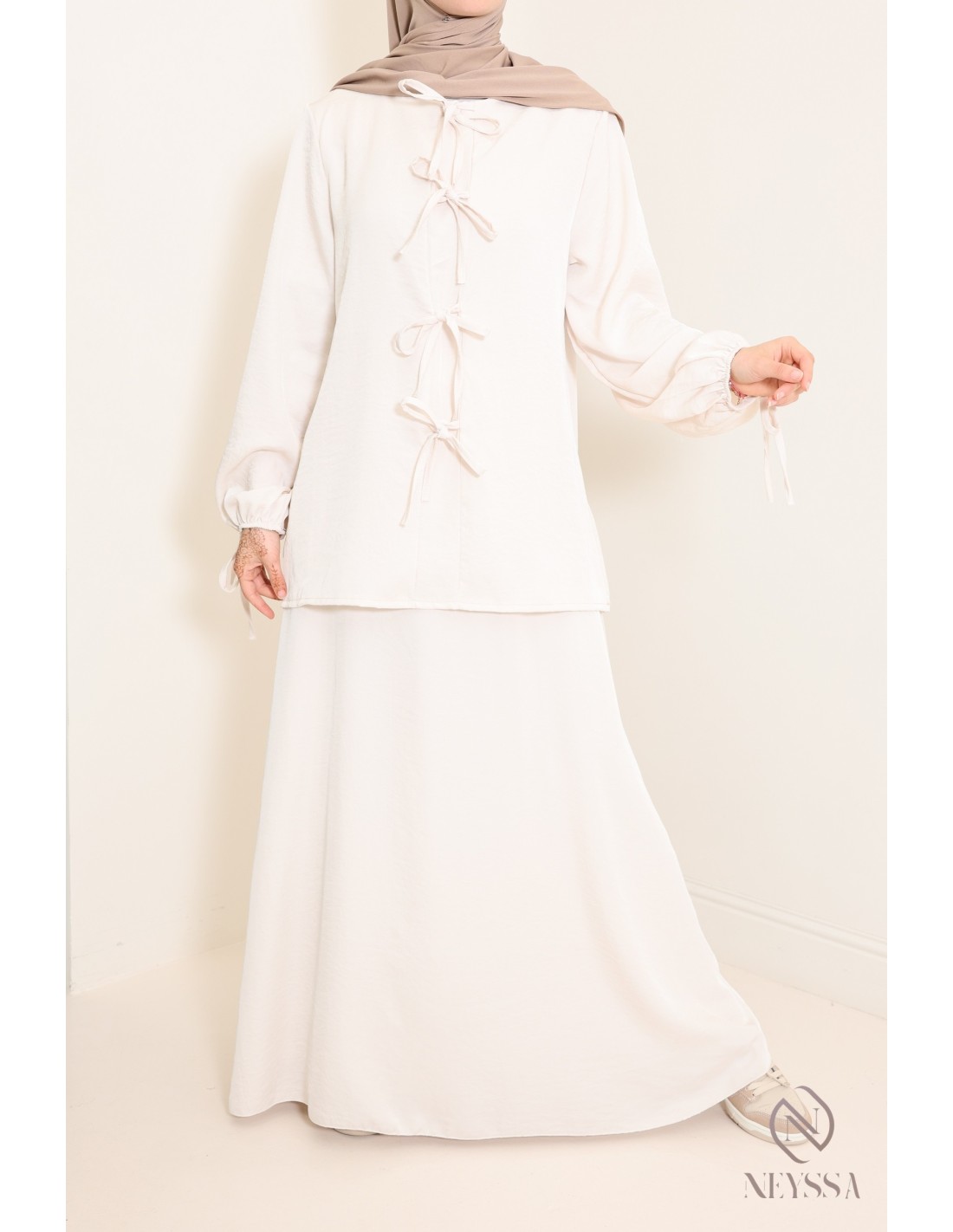 Beiges Set mit langem Rock + langärmeliger Tunika für moderne Damen