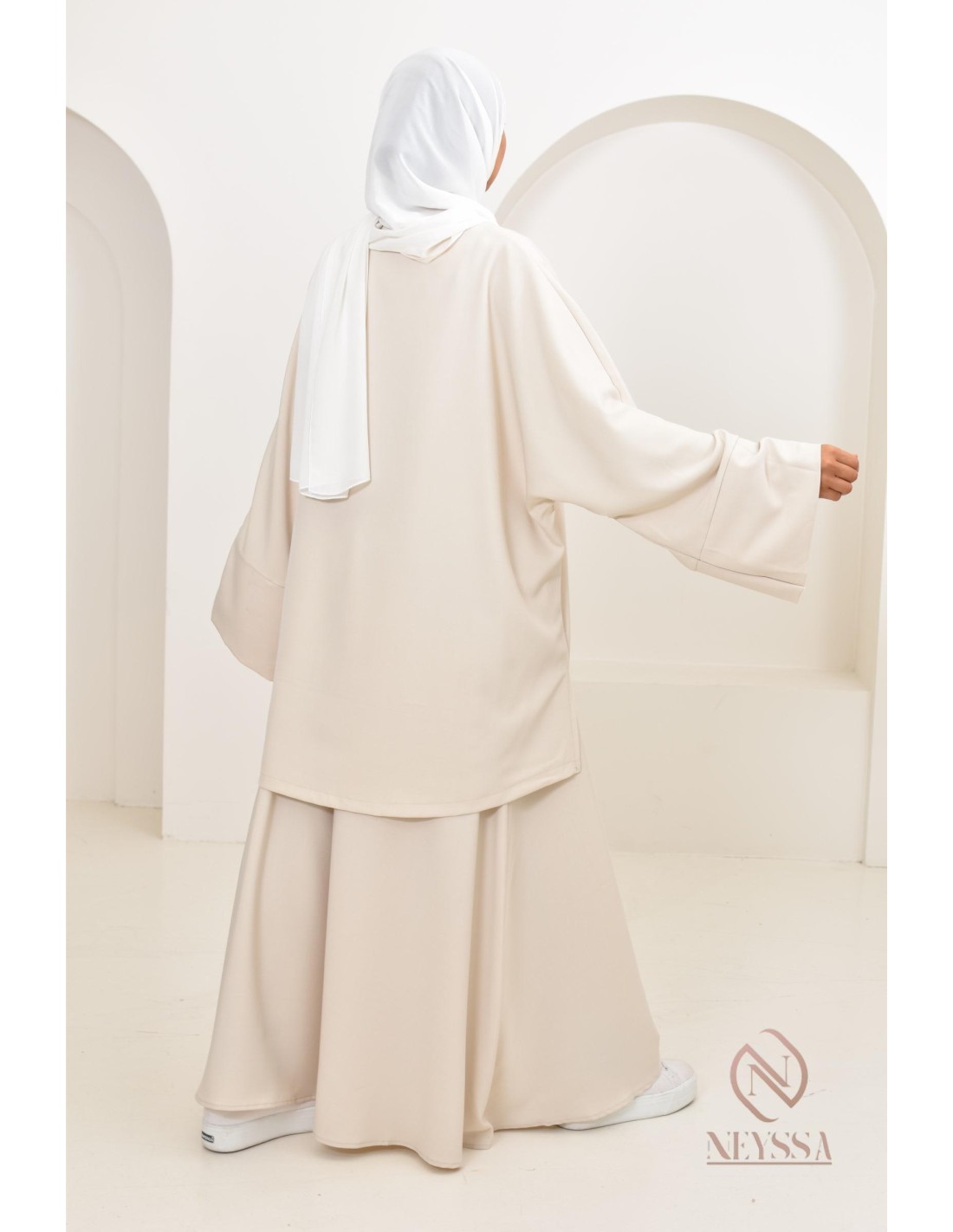 Dieses Ensemble wirkt bemerkenswert schick und ist ideal für verschleierte Frauen, die auf der Suche nach Bescheidenheit und Raffinesse sind.