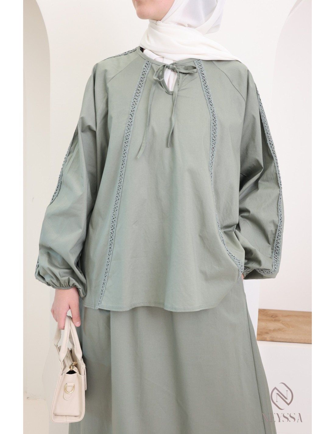 2-teiliges Baumwollensemble aus Bluse + langem, ausgestellten Rock für moderne Hijabi-Damen
