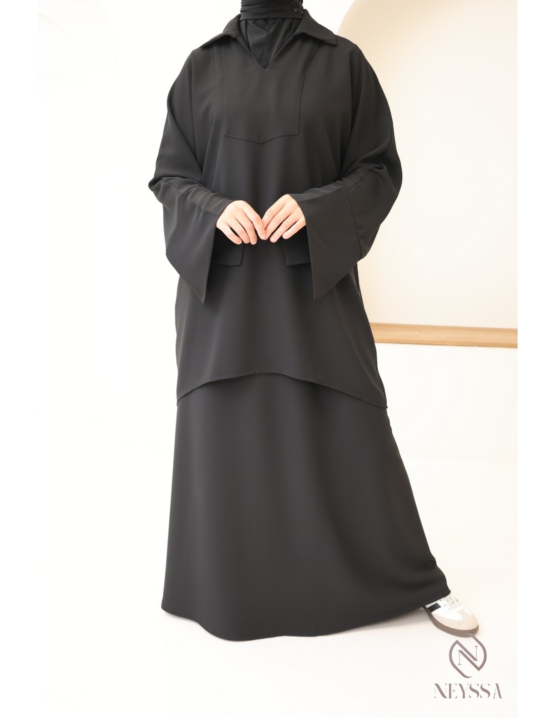 - Bescheidenheit wird respektiert: Dieses Ensemble wurde entwickelt, um den Anforderungen der bescheidenen Mode gerecht zu werden, und bietet eine schlichte Eleganz, die den Prinzipien der Sittsamkeit entspricht.