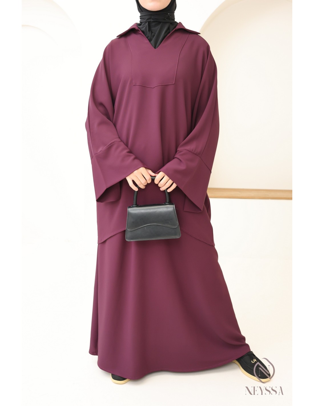 Violettes Set aus Tunika und langem, ausgestellten Rock für Damen mit Hijab im Trend : ein Must-have