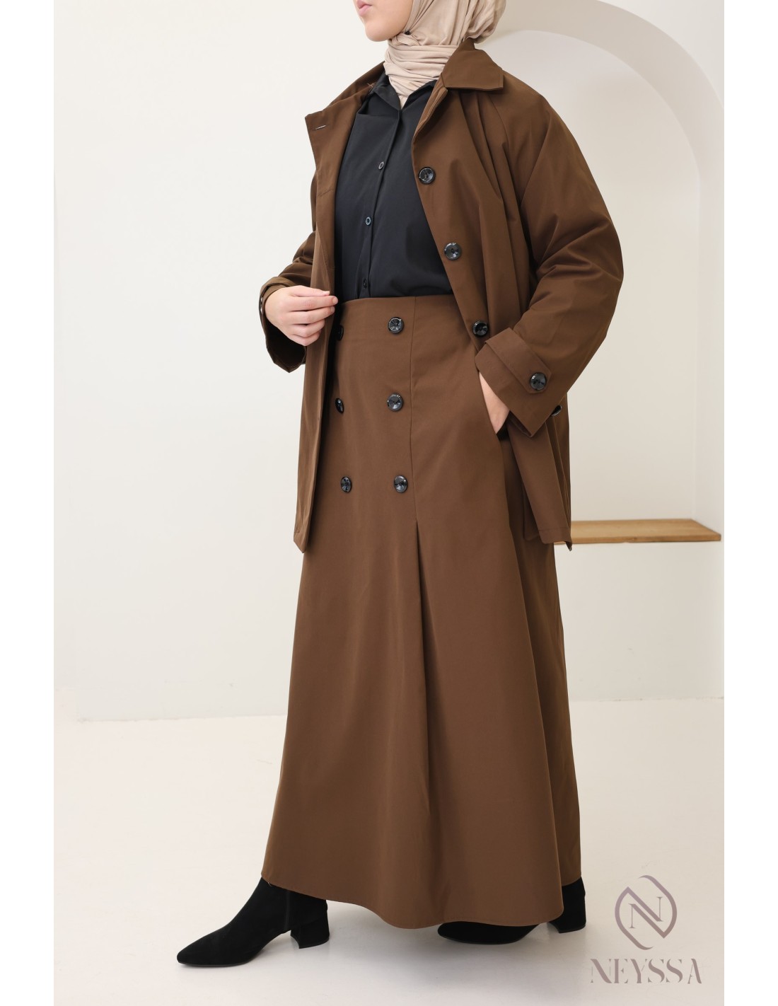Dieses Set wirkt bemerkenswert schick und ist ideal, um verschleierte Frauen auf der Suche nach Bescheidenheit und Raffinesse zu unterstreichen.