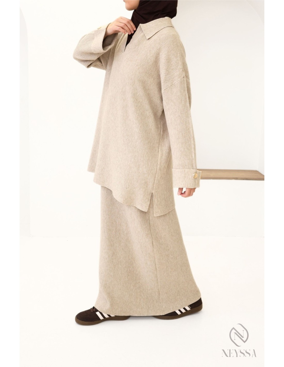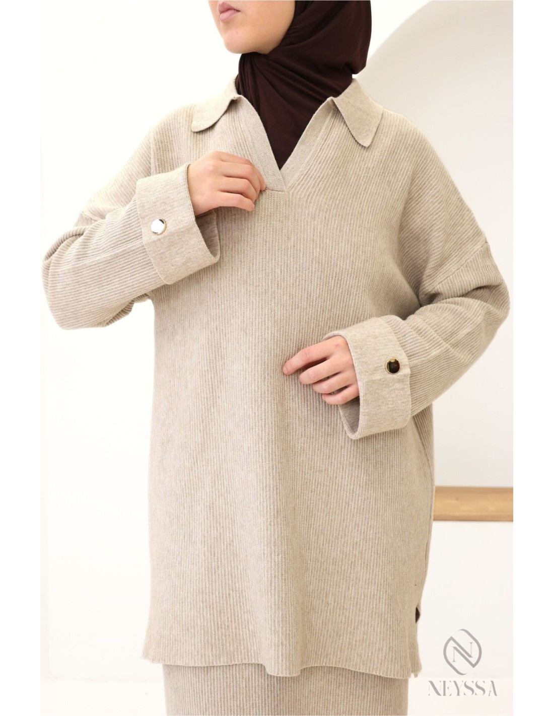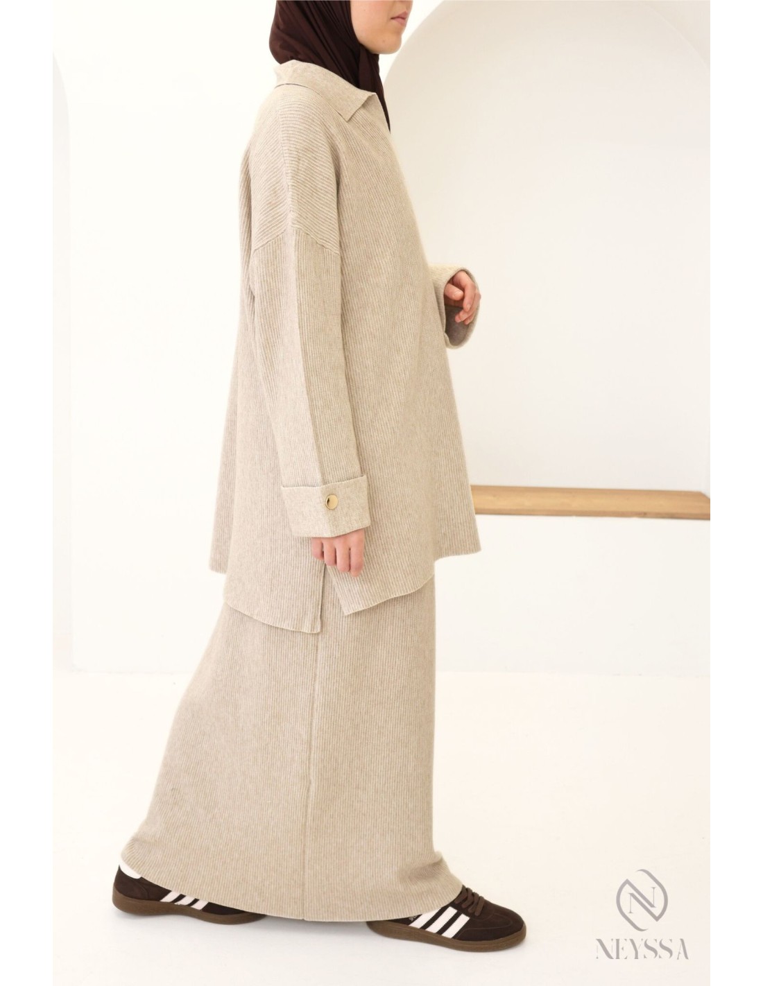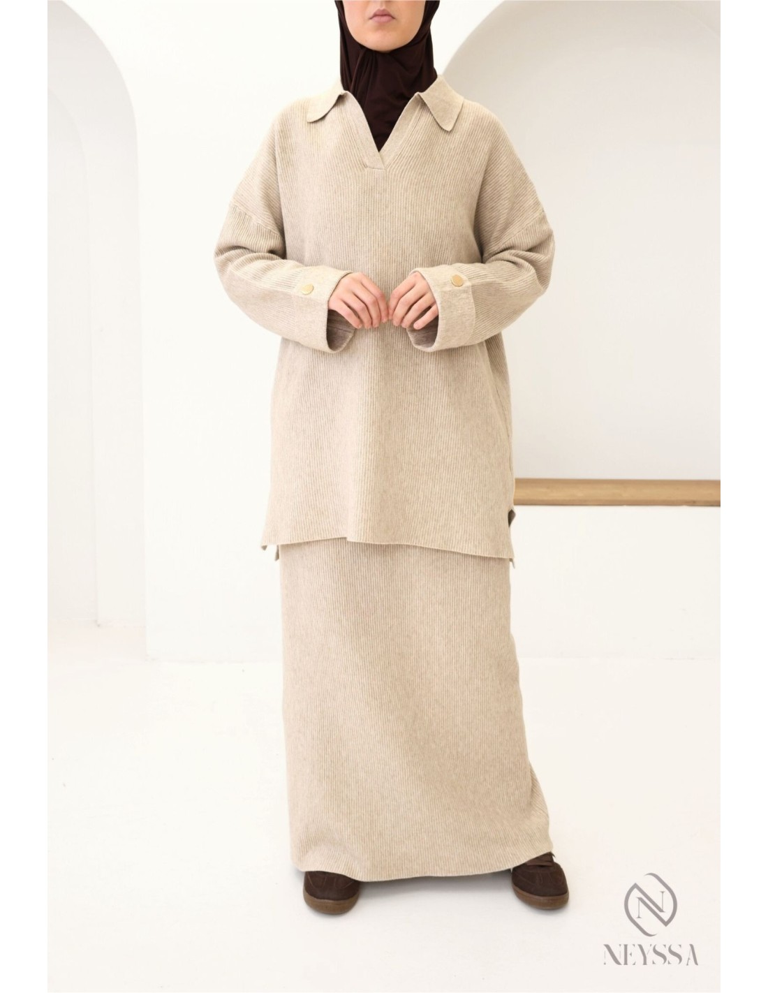 2-teiliges Set für Frauen mit Hijab in Beige: gewebter Stoff