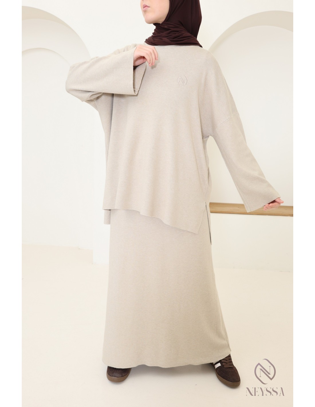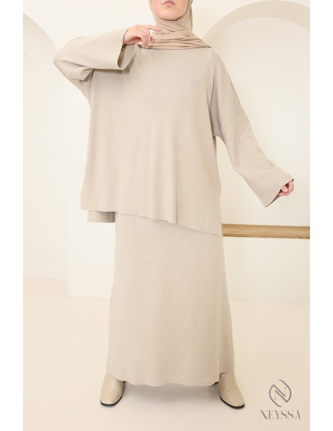 Dieses Ensemble von Neyssa Confection ist ein Must-have der Modest Fashion im Winter. Es ist aus weichem, blickdichtem Strick gefertigt und bietet einen hohen Tragekomfort für Ihren Alltag :