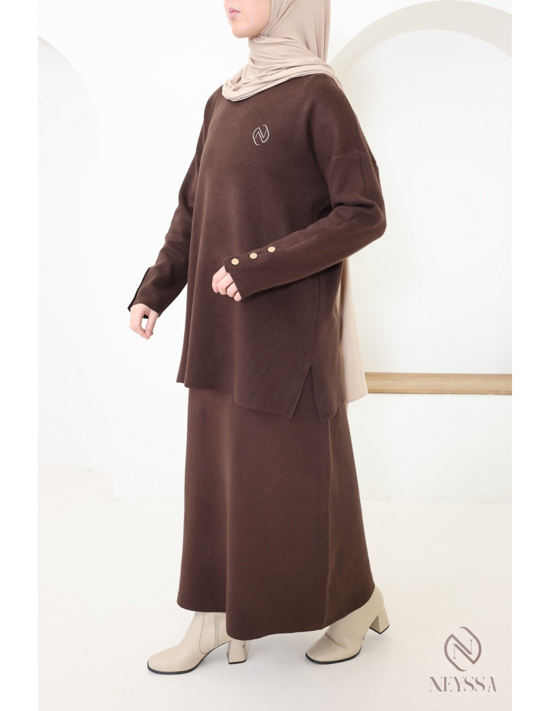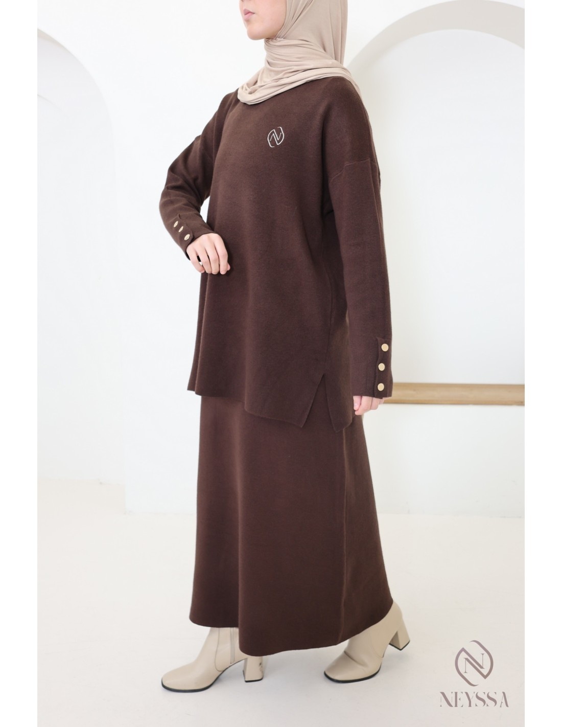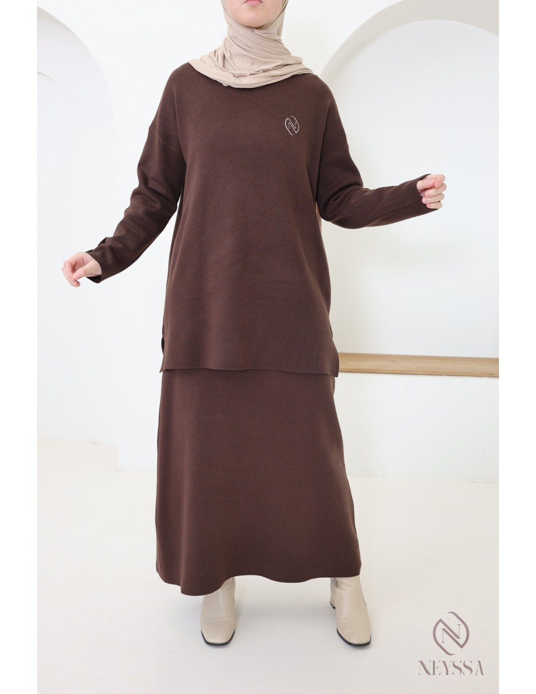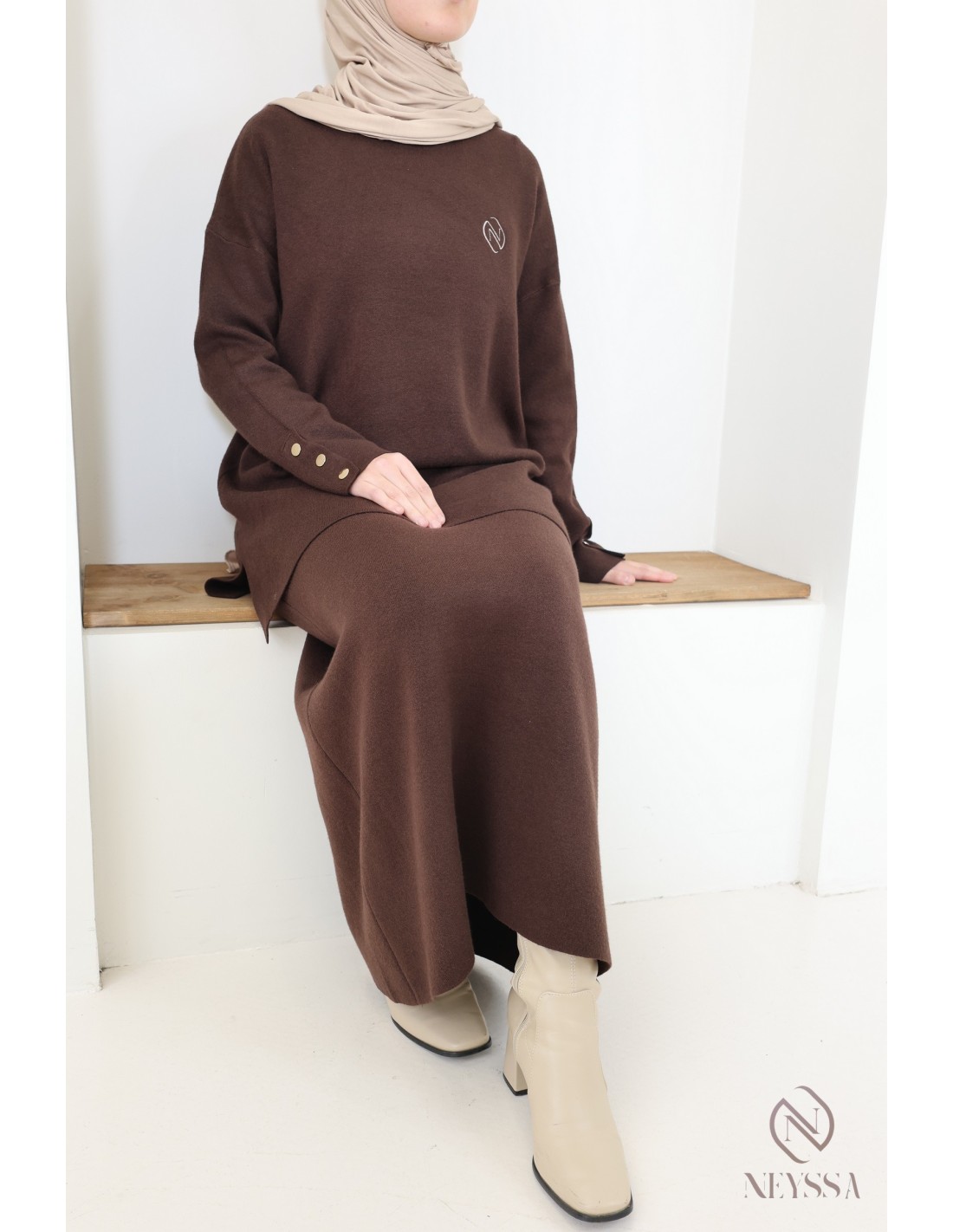 Dieses Ensemble von Neyssa Confection ist ein Must-have der Modest Fashion im Winter. Es ist aus weichem, blickdichtem Strick gefertigt und bietet einen hohen Tragekomfort für Ihren Alltag :