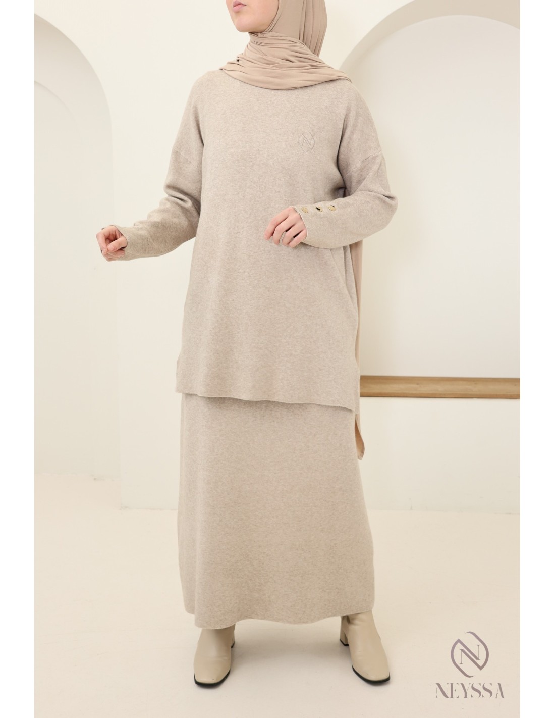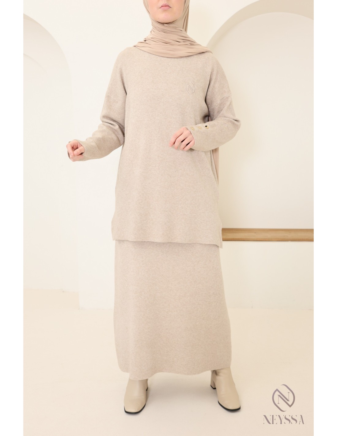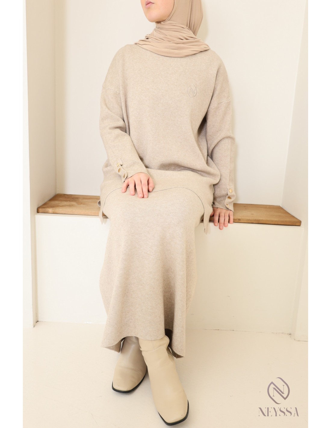 Dieses Ensemble von Neyssa Confection ist ein Must-have der Modest Fashion im Winter. Es ist aus weichem, blickdichtem Strick gefertigt und bietet einen hohen Tragekomfort für Ihren Alltag :