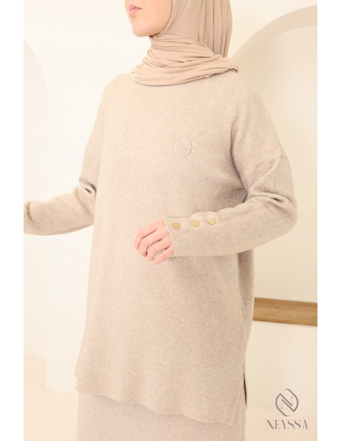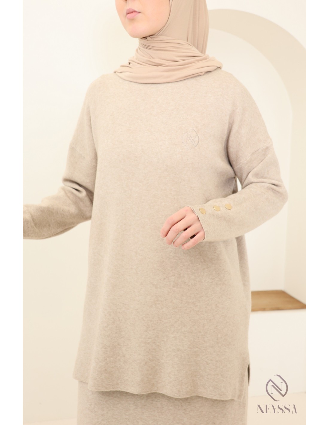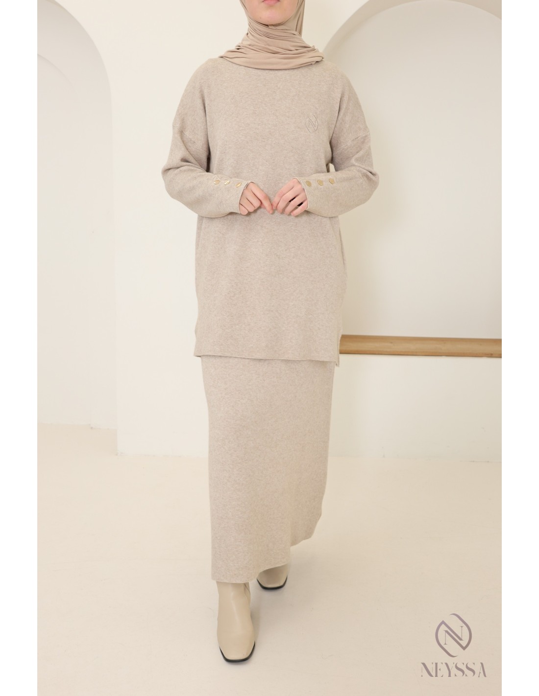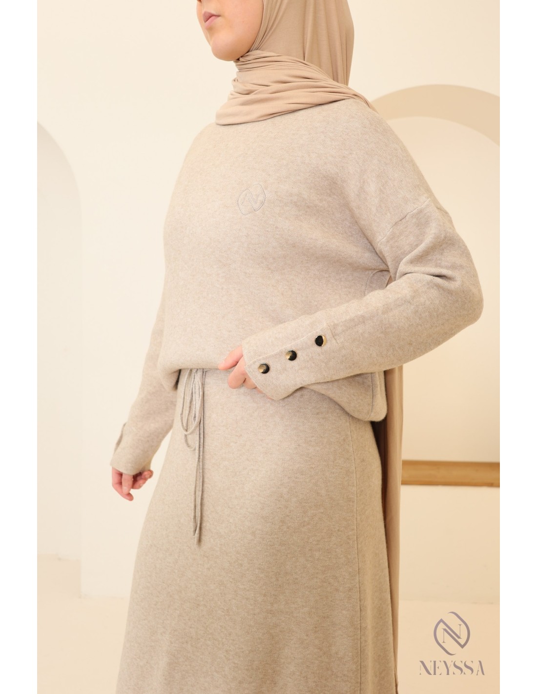 Dieses Ensemble von Neyssa Confection ist ein Must-have der Modest Fashion im Winter. Es ist aus weichem, blickdichtem Strick gefertigt und bietet einen hohen Tragekomfort für Ihren Alltag :