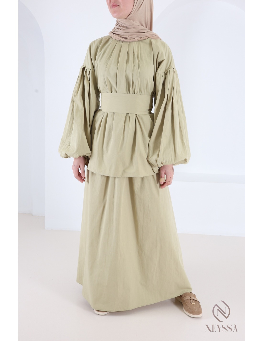 Set aus Baumwollrock „Brume Glow“ in Salbeigrün