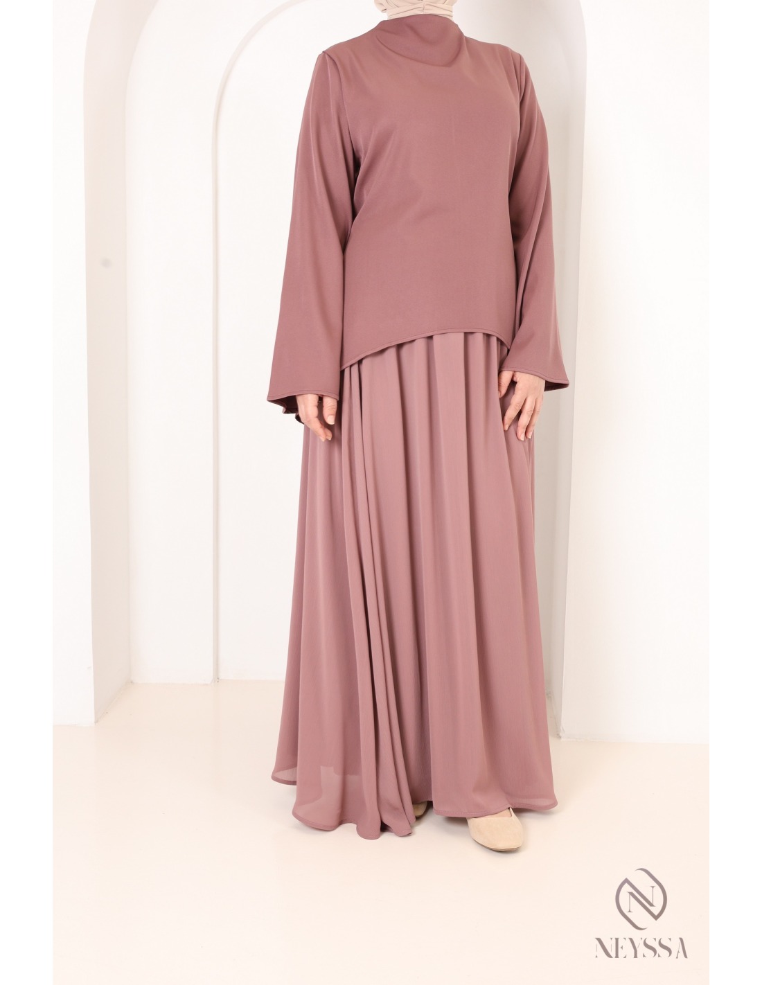 Set aus langem, plissiertem Musselinrock + A-Linien-Bluse aus Crêpe