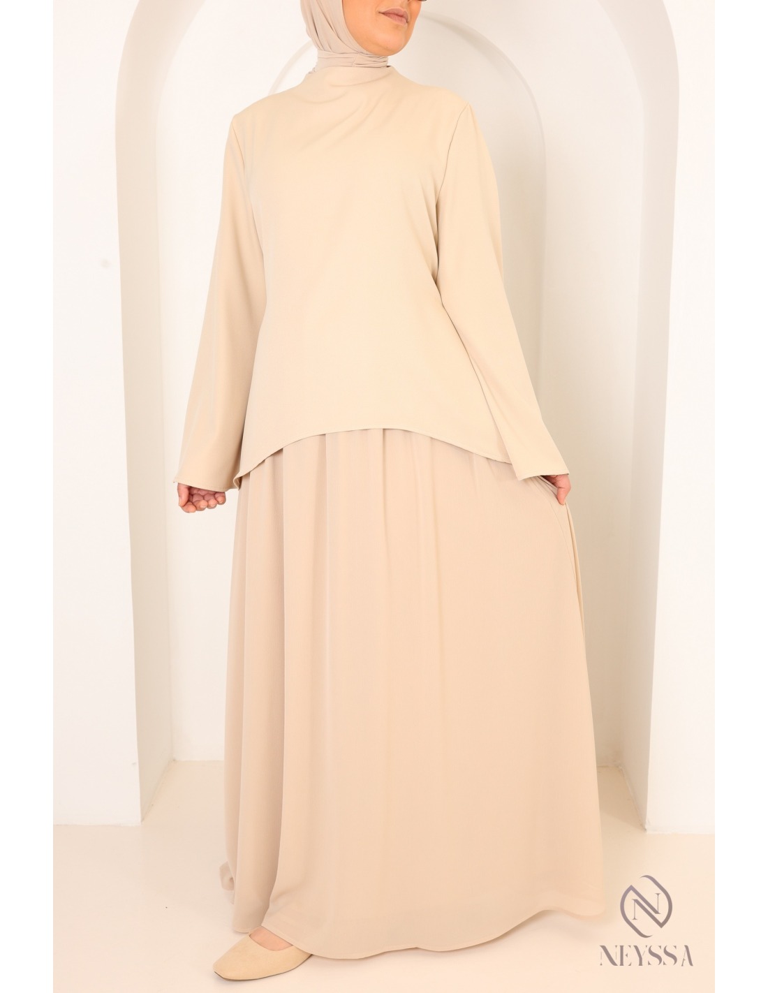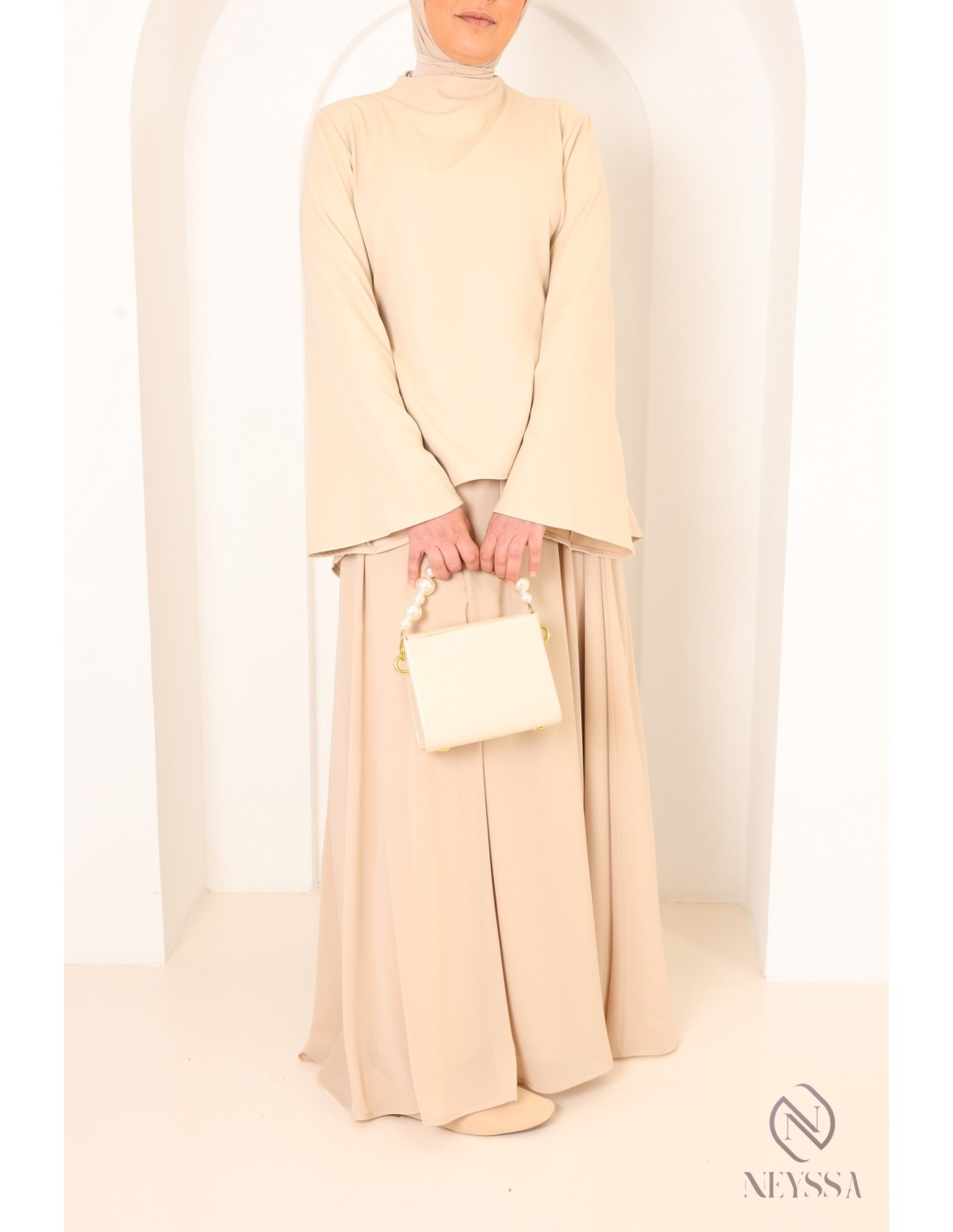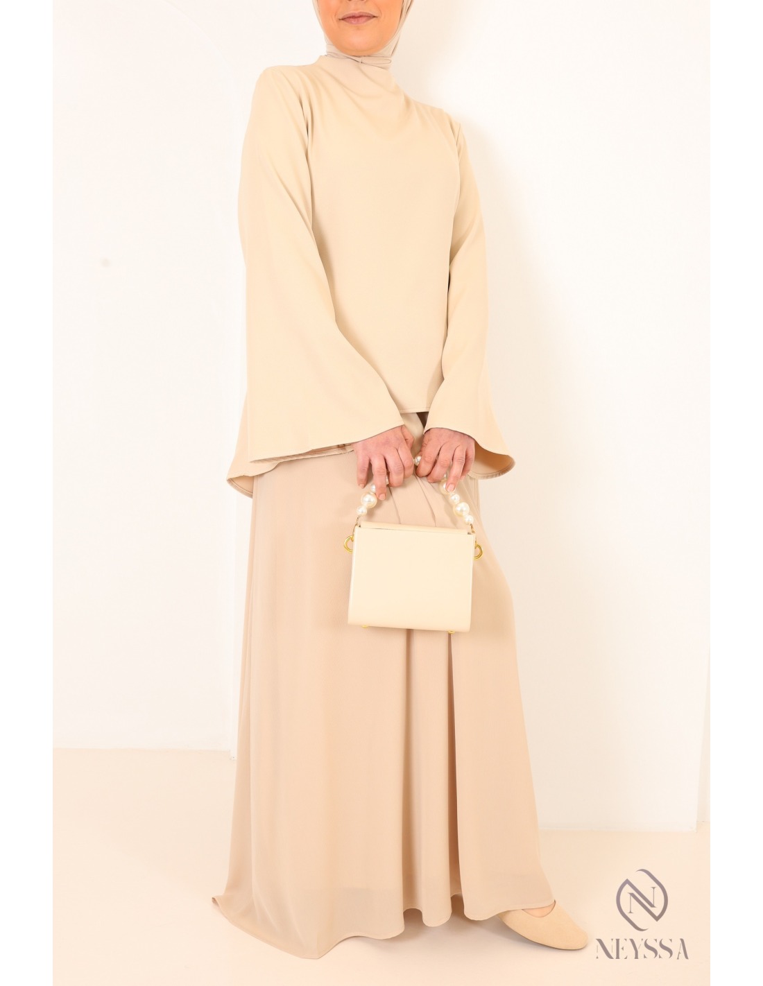 Kombination aus A-Linien-Bluse aus Crêpe und langem Rock