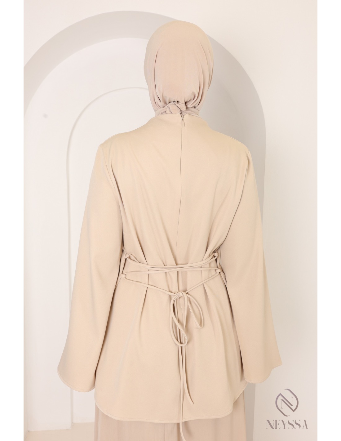 - Verschluss am Rücken: ermöglicht es, das Oberteil zu taillieren