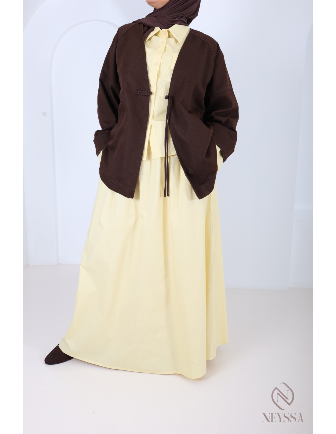 Warum sollten Sie sich für das dunkelgelbe Baumwoll-Set mit ausgestellter Rockform entscheiden?
