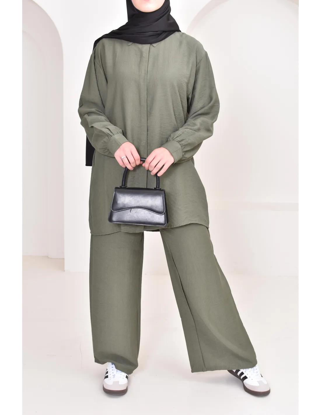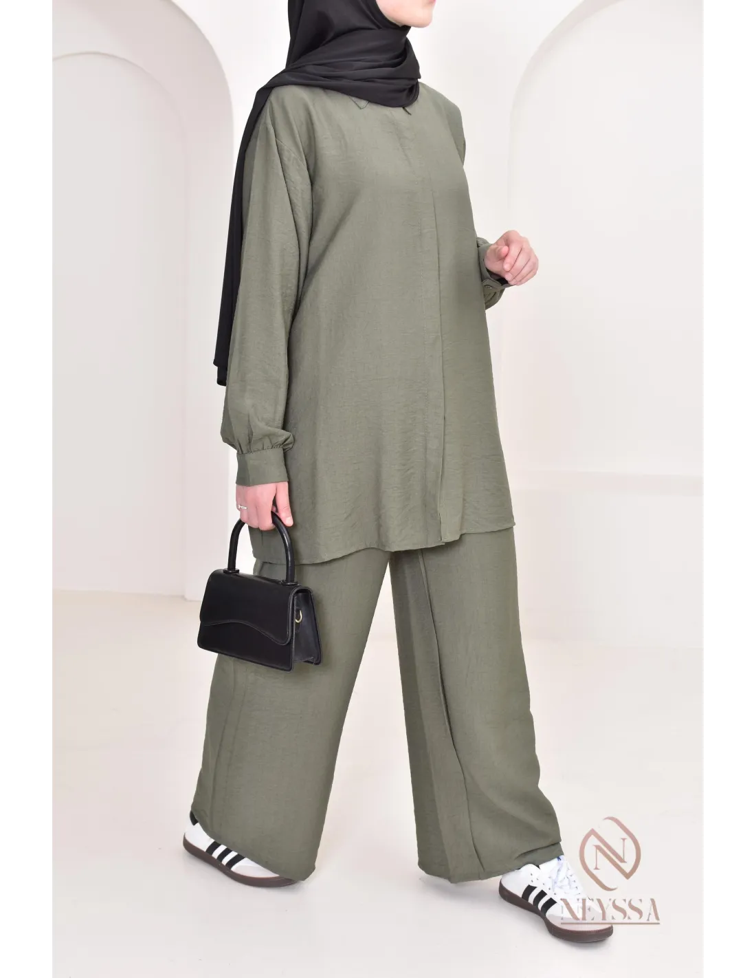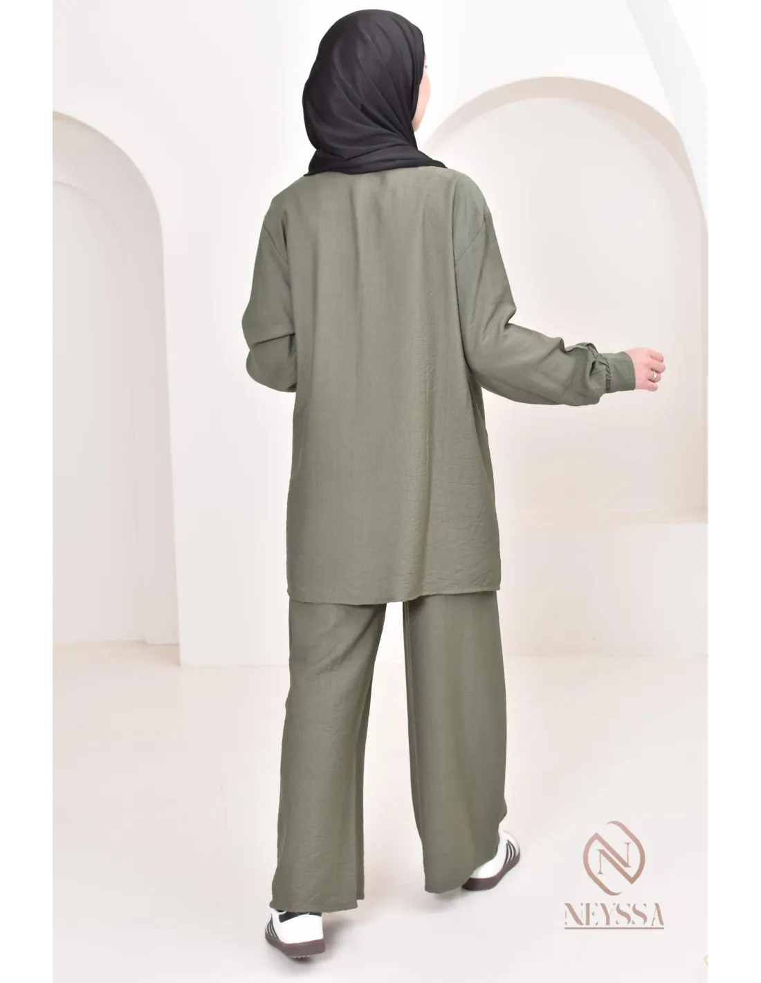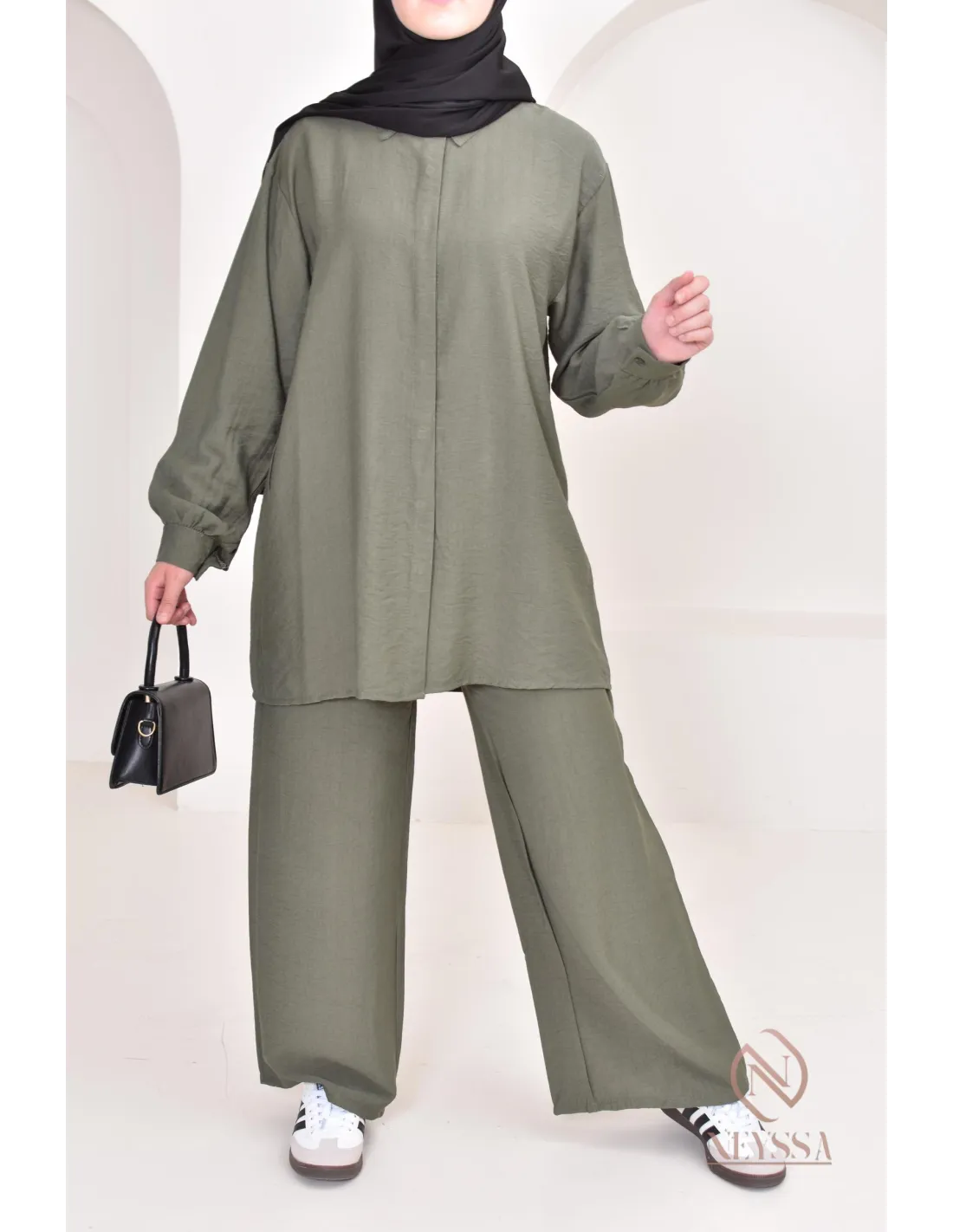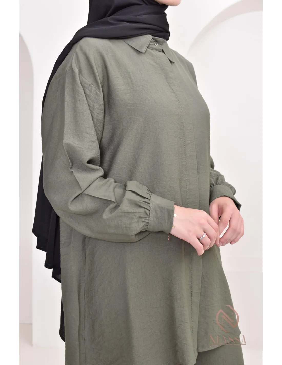 Set aus langem Hemd und Hose aus Leinenstoff, Hijabi-Outfit-Idee