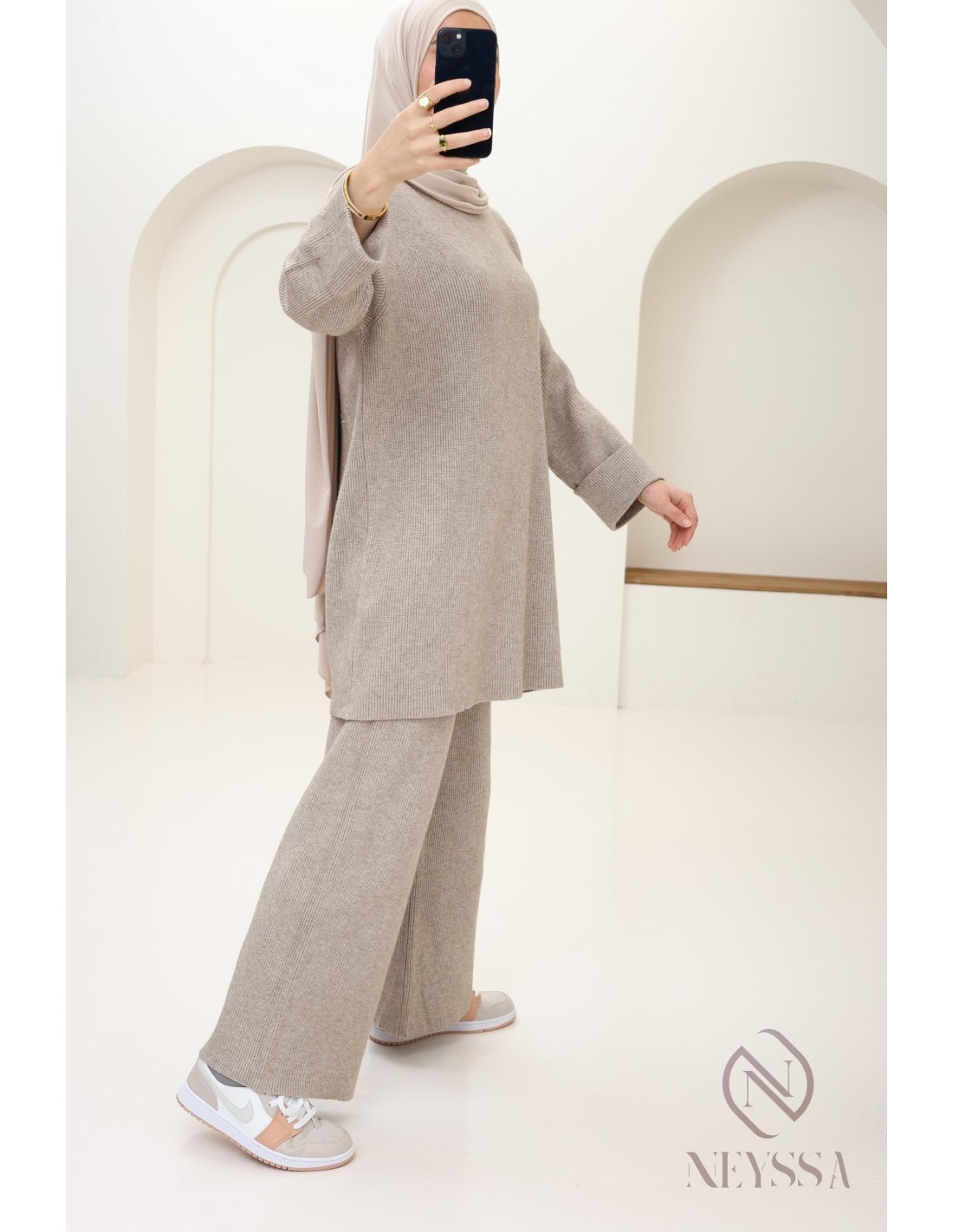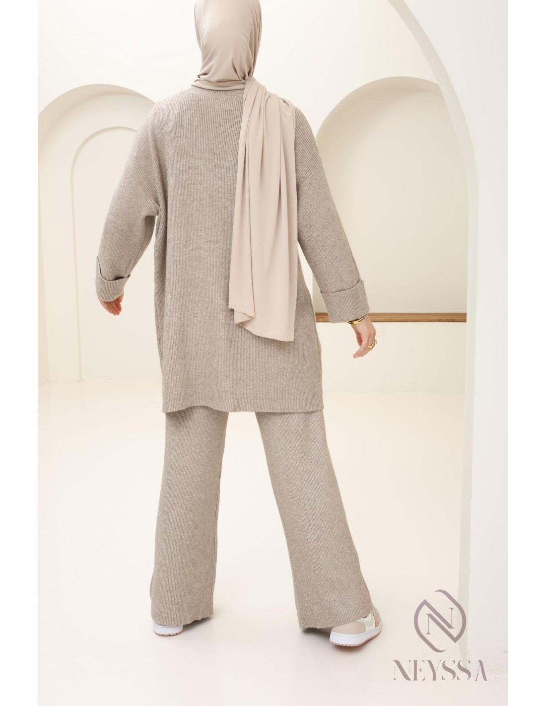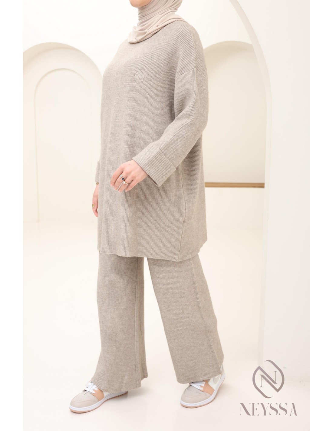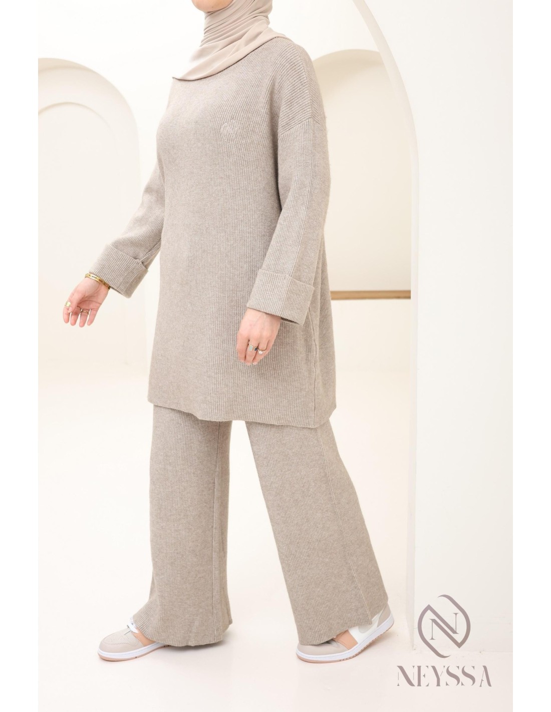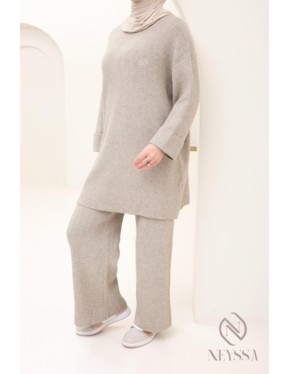 Damen-Set aus Strick Taupe Hijabi